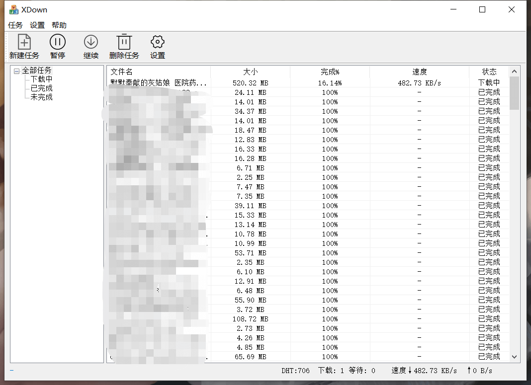 下载资源的时候随便选个工具就可以使用了,如果资源下载不动了切换用迅雷下载可能会有速度,还是不行就是资源太冷门了没有下载节点,及时的更换新的下载链接。老夜平时喜欢用XDown下载一些资源,这里附上实测图,一些BT下载任务还是有速度的。