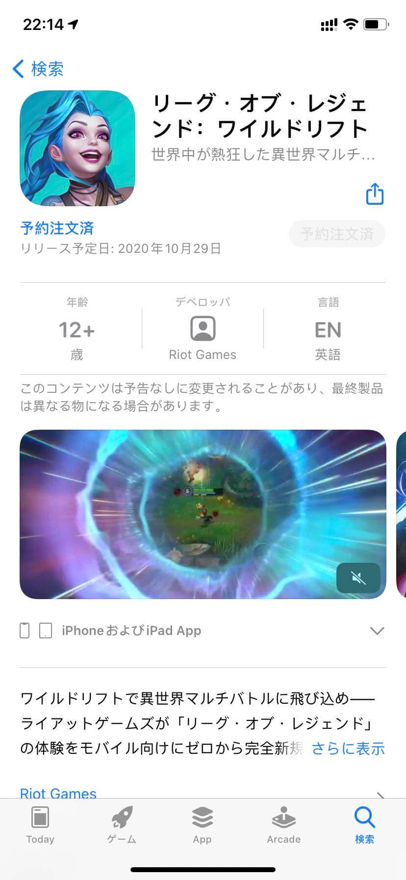 外区Apple ID帐号成功登录App Store商店后直接搜索“League of Legends”就可以安装了