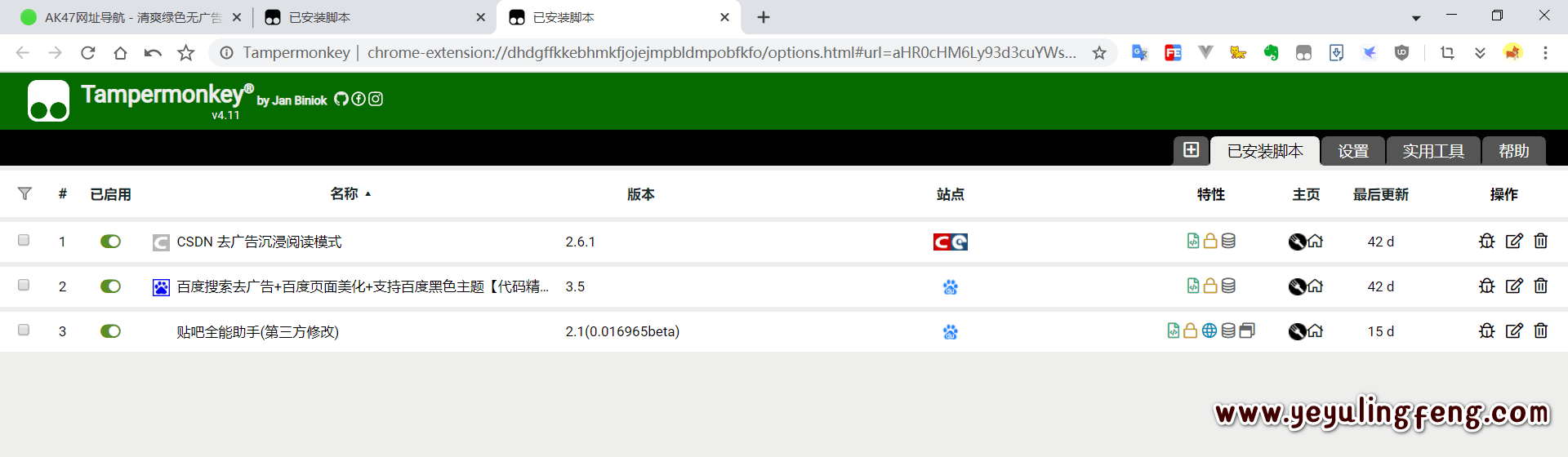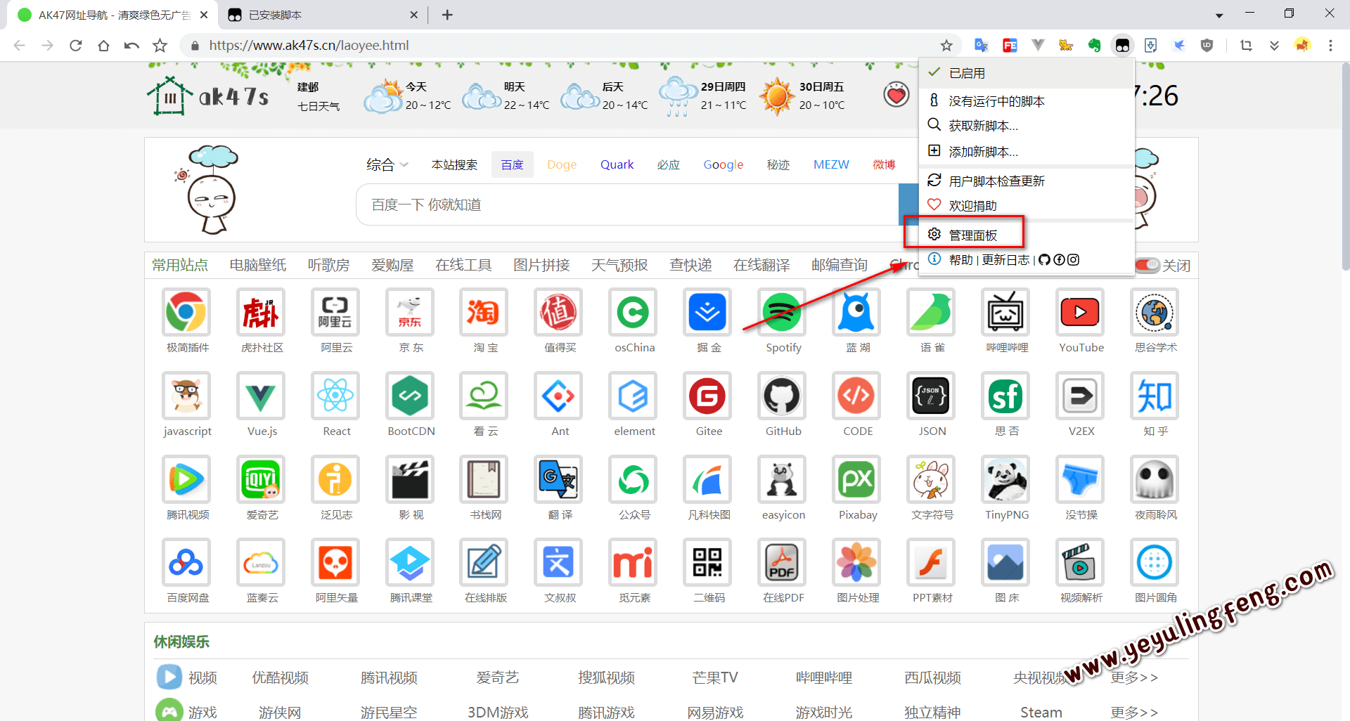 日常使用电脑浏览器算是使用最频繁的应用之一了,通过适当的配置安装一些拓展插件能让自己的浏览器更加的好用快捷。对于一些网站我们需要对页面进行调整改造这里就不得不需要另外一款神级浏览器拓展——Tampermonkey,Tampermonkey简称油猴即使没接触过也肯定在大佬们茶余饭后听到。对于新手小白来说可能还体会不到这款脚本管理器的强大之处,下面老夜附上一些魔改后的网页: