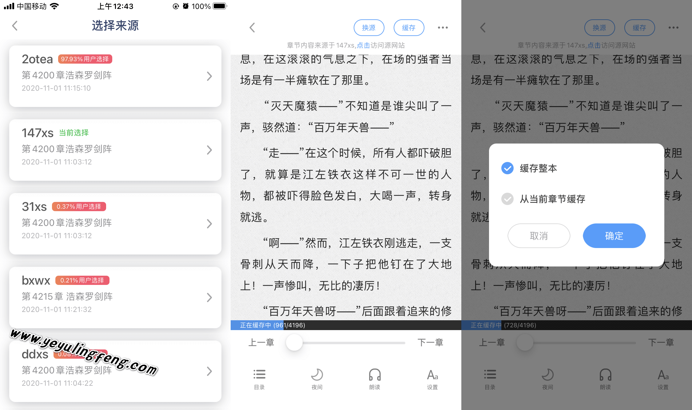 除了一些阅读相关的设置该有的都有,还支持一键缓存方便在地铁、厕所等信号不佳的场所能离线阅读消磨时间。支持朗读全文但都是机器音有听书需求的还是乖乖转步专业听书软件会好点!