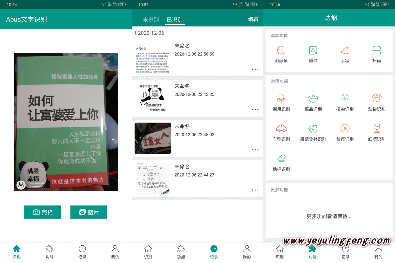 软件使用也很简单,可以直接读取手机相册内的图片直接进行识别扫描,或者日常随手拍拍拍也能直接开始识别了。虽然是一款免费工具但是支持的功能倒是跟付费的比起来一个都不少,支持常规的文字识别提取、植物识别、手写识别、汽车识别、菜品识别、红酒、地标、瓜果蔬菜等识别,当然人脸识别也是支持的不过实用性不强基本上就是作娱乐用途。