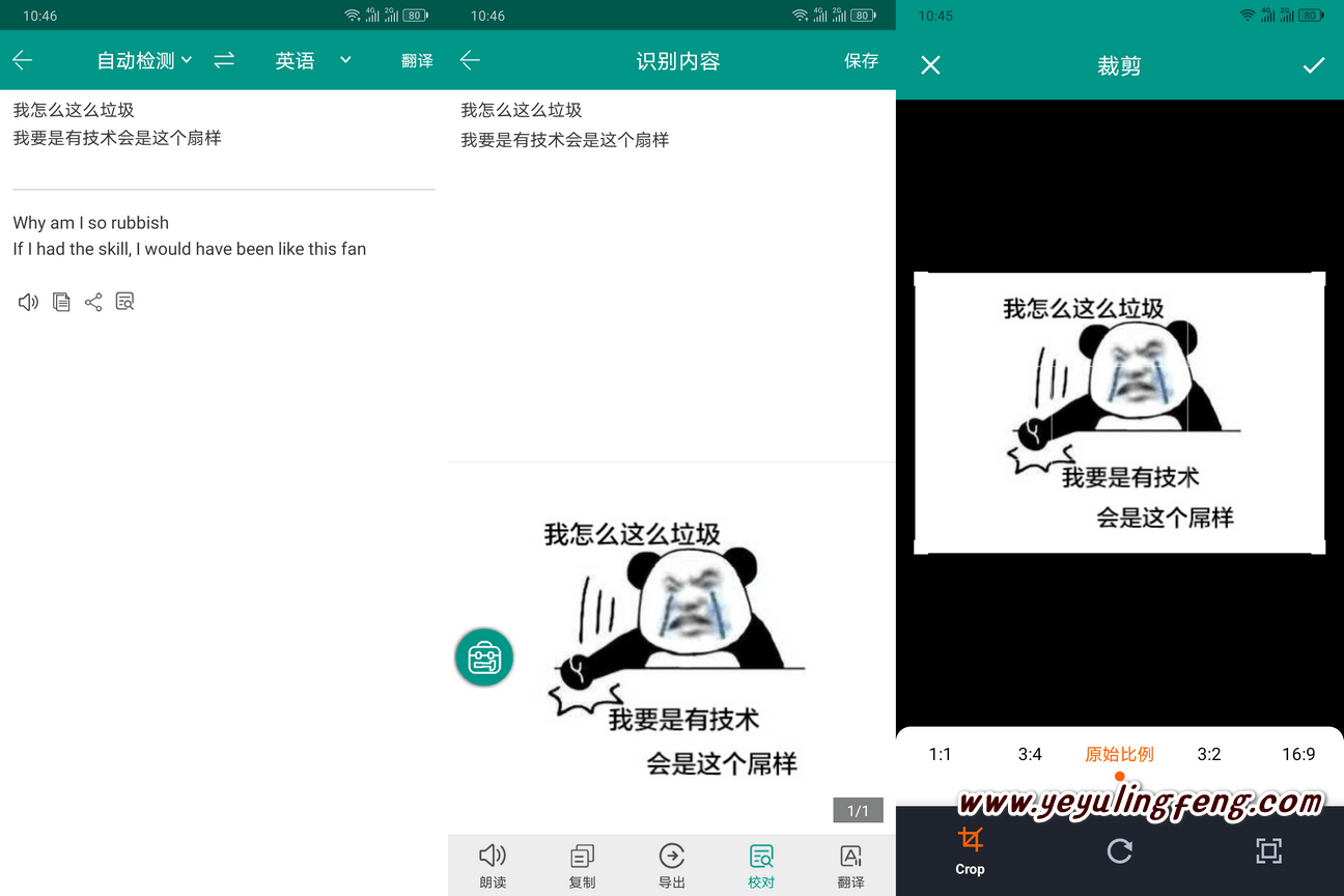 随便找几张图片用户测试看看识别准确率问题,常规的带文字的图片识别率基本上是很高的,这次老夜直接那表情包用于测试了,具体效果如下图所示了,遗憾的是错了一个比较明显的那个字。不过识别后的文字内容就可以自由编辑复制,还能直接进行翻译或者直接语音朗读。这里需要注意的是免费的识别工具基本上是不支持公式、表格以及特殊符号扫描的,如果有这方面的需求请购买白描或者极度扫描的付费会员加个也不贵。