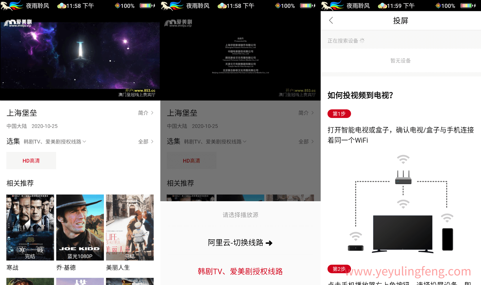 播放时支持线路选择以及投屏,软件暂时不支持离线下载功能