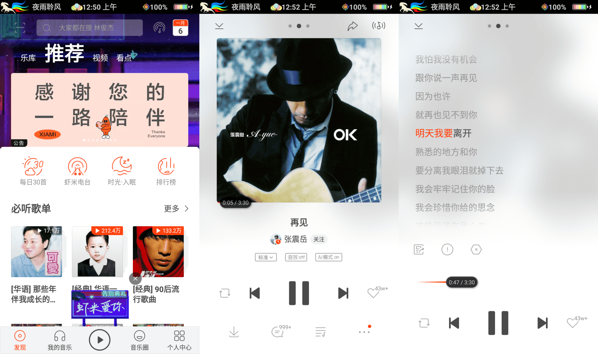 最后老夜特意下载安装使用了,顺便截几张图留个记忆,不得不说国内的音乐软件真找不到几款比虾米音乐广告少的,给人一种很干净文艺的感觉,但结局已注定,挥了挥手后会无期!