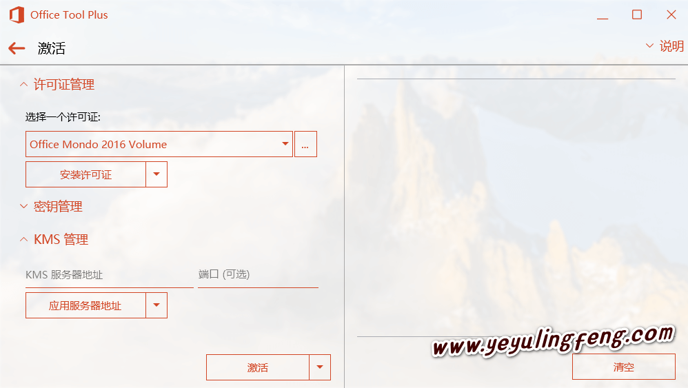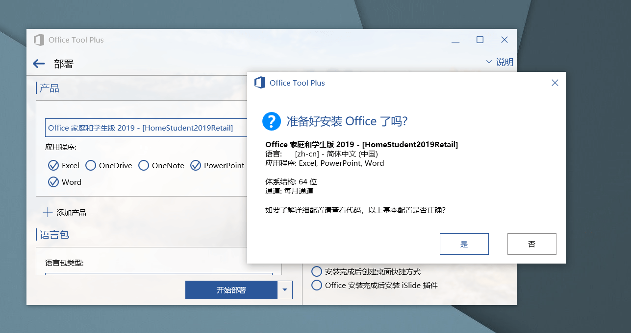 Office Tool Plus 基于 Office 部署工具 (ODT) 打造,可以很轻松地部署 Office,支持多个 Office 授权版本的部署,用户只需添加产品即可开始下载、安装。同时我们为高级用户开设了多种安装选项,快捷轻松配置 Office。如果无法通过 Office 的激活向导激活 Office,Office Tool Plus 可以为您安装密钥或者配置 KMS 服务,同时高级管理可以让您轻松管理 Office 的授权配置