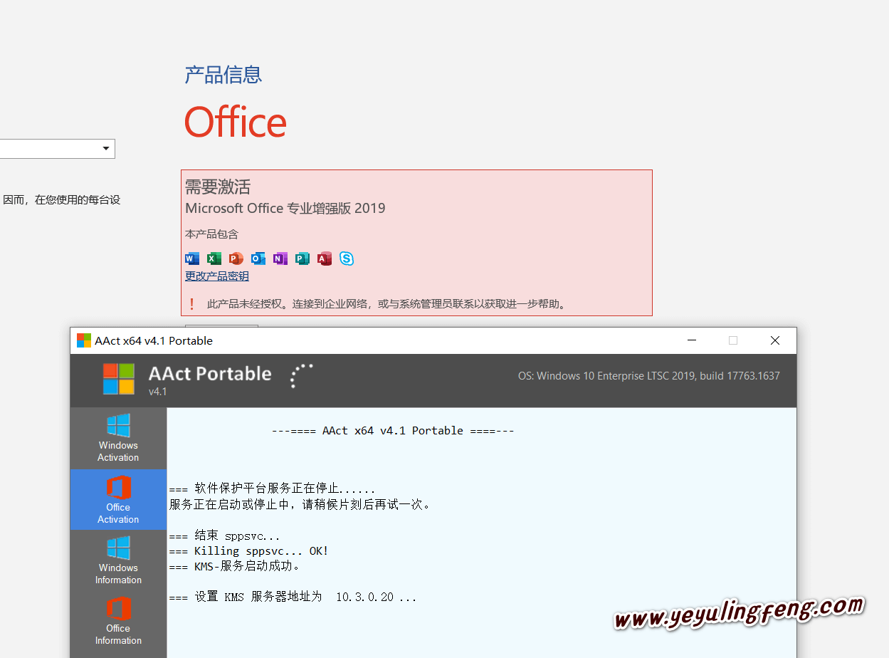 早期的Office 2013-2019 C2R Install自带激活功能,但是后面就不支持了需要我们使用激活工具手动激活,工具这里推荐HEU_KMS_Activator和AACT,AACT请访问之前的文章介绍:AAct KMS — 电脑系统激活工具