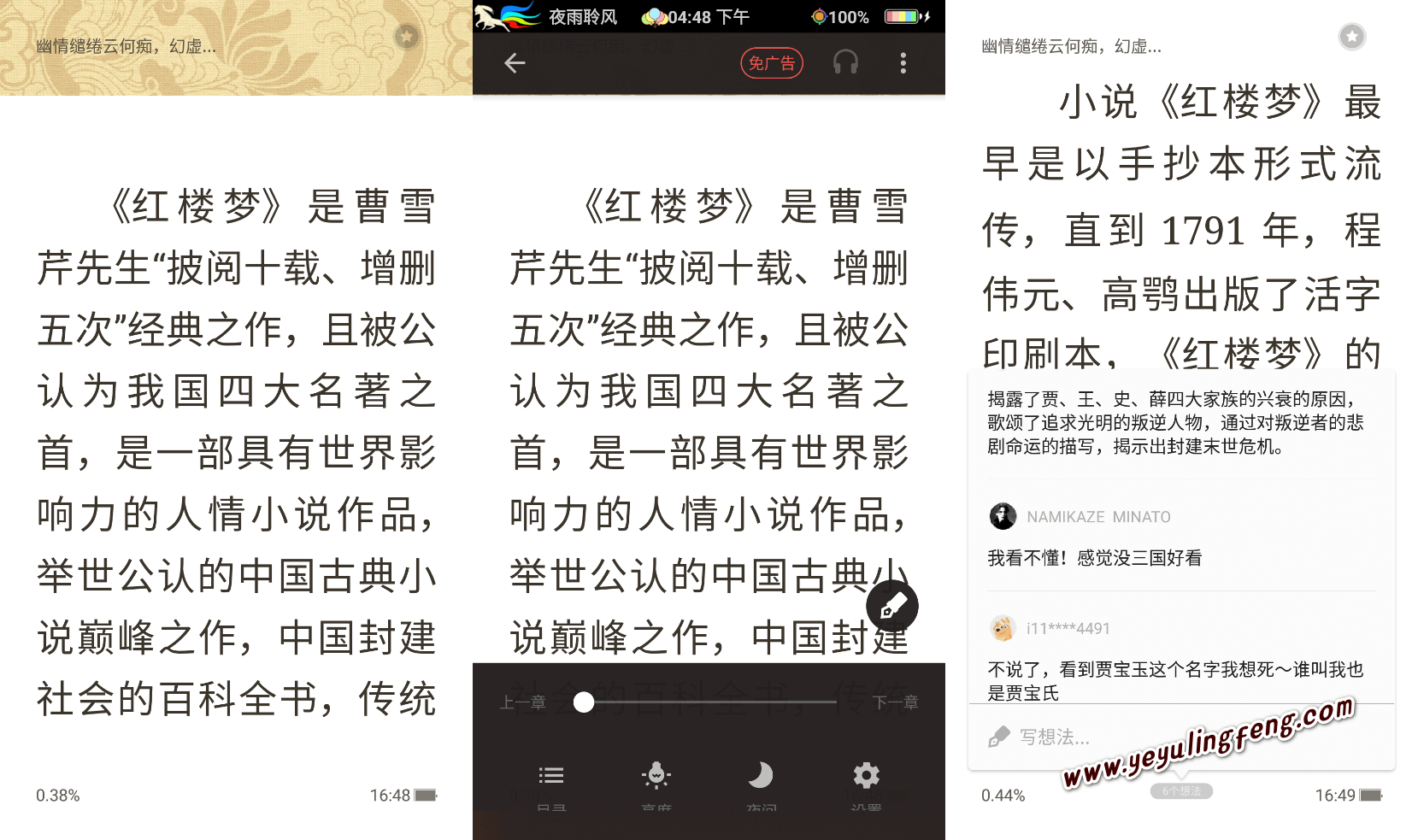 阅读时基本上与常规的阅读软件差不多,一些文学巨著还是是支持彩画阅读的,这跟那些只能看格式化后的文字排版工具相比还是非常不错的