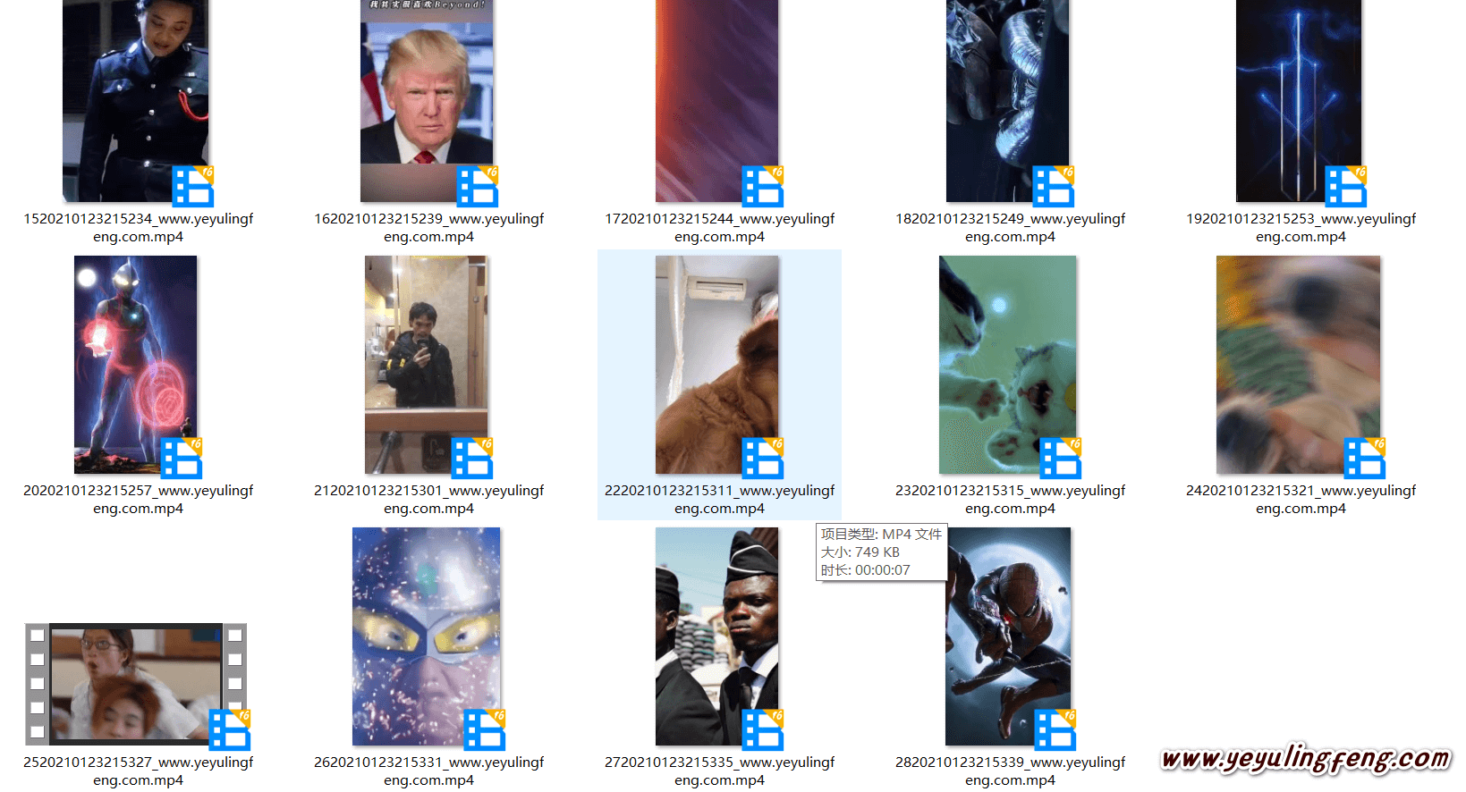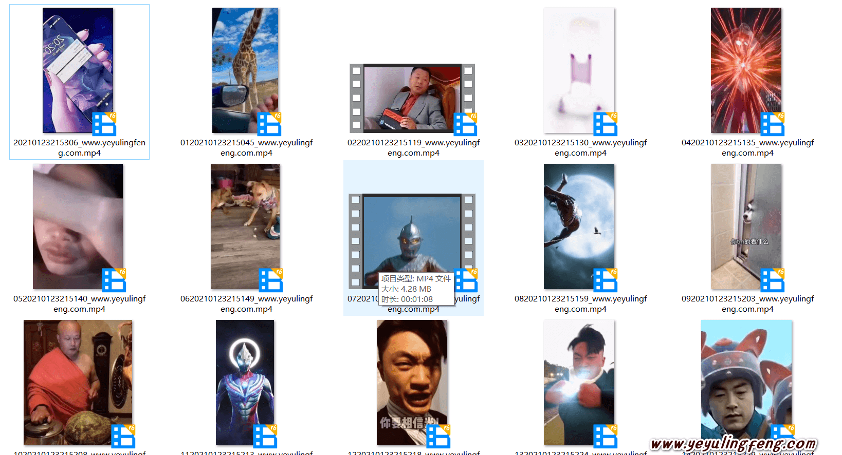 教程容易但是大家肯定都缺乏有趣的视频资源,这里老夜花费好一番功夫在短视频app里面下载了60个左右的视频,均是无广告无水印的视频文件免费供大家下载,附上截图大家简单的预览下:
