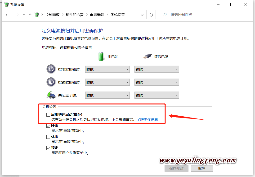 你以为这样就完事了,并没有!Windows的还有个快速启动的功能大家可根据个人需求选择使用,Windows默认为开启状态