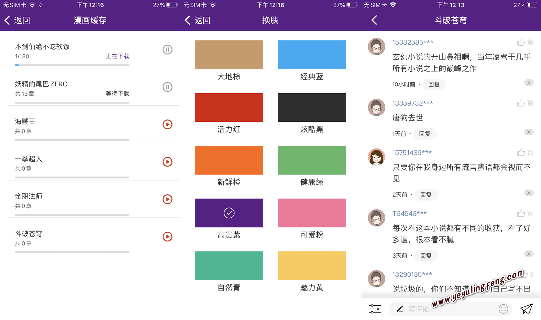 在设置中可以看到缓存下载进度,这里还是分为了“小说缓存管理”和“漫画小说管理”两版块,点击进入就能看到任务缓存进度了,软件自身支持换肤等其他简单设置