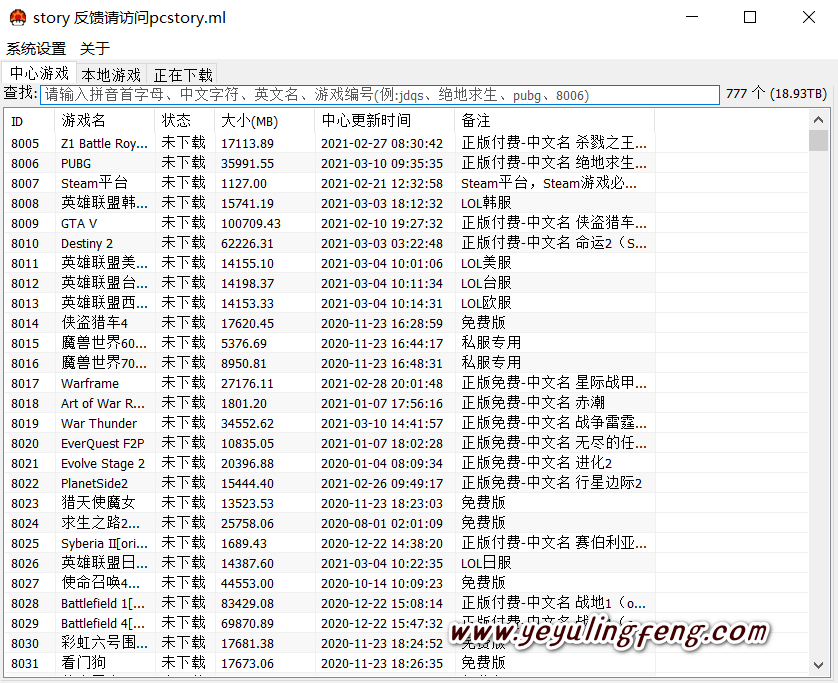 磨菇游戏下载器解决了大部分电脑游戏玩家的找资源的问题,对于里面的正版付费游戏完全可以去Steam这些平台下载,这款下载器更适合下载那些私服免费之类的游戏。软件确认无毒可放心使用至于下载后的游戏能否正常运行以及其他因素这里条件有限暂时无法测试,工具已经打包整理供大家免费下载使用,绿色便携版本解压后找到里面pcstory.exe鼠标双击即可运行!