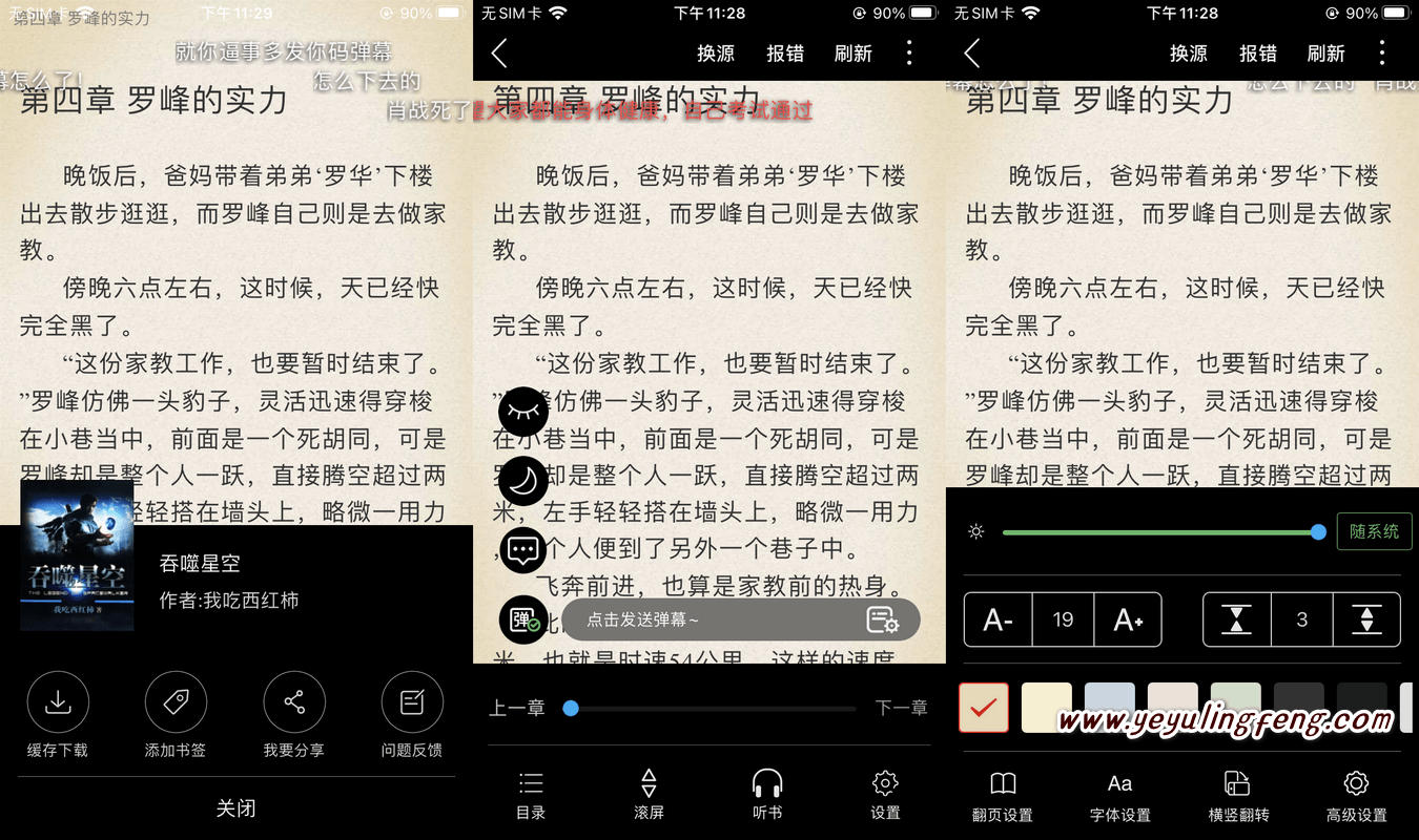 小说支持评论以及发弹幕了,同时还支持换源以及下载