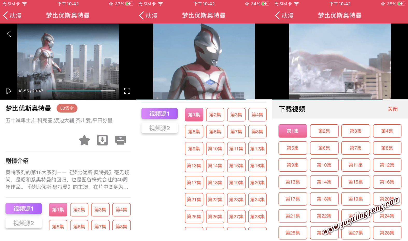 进入视频播放列表我们可以清除的看到支持本地收藏、离线下载以及投屏播放,大部分视频均支持换线路源