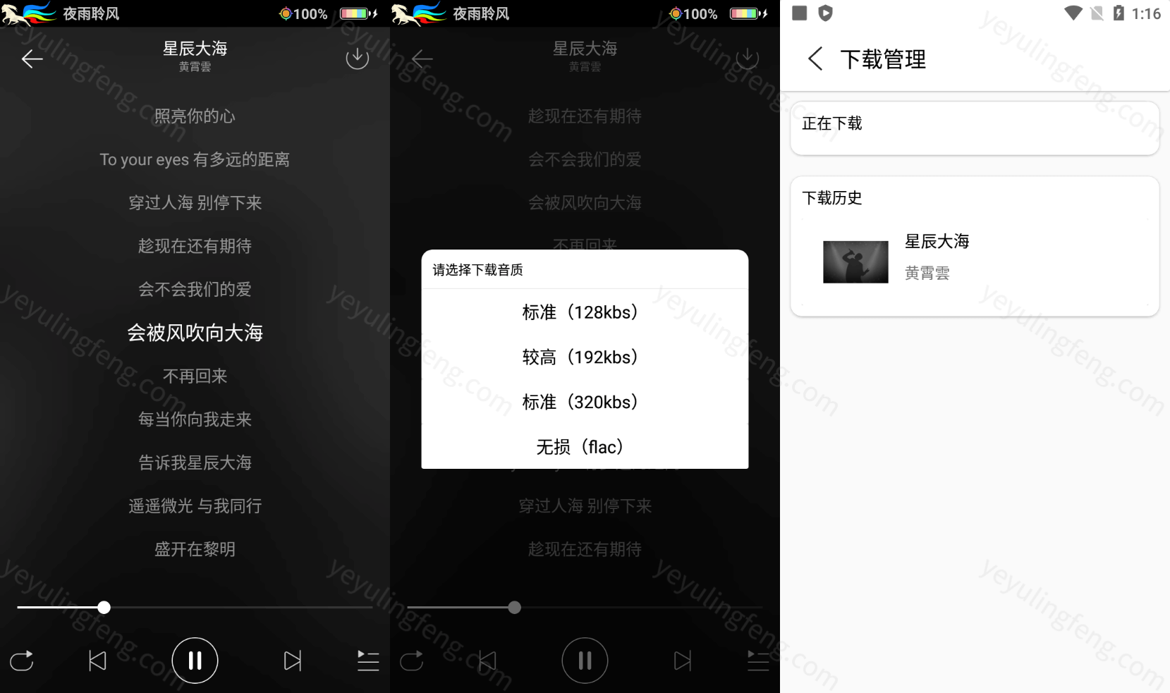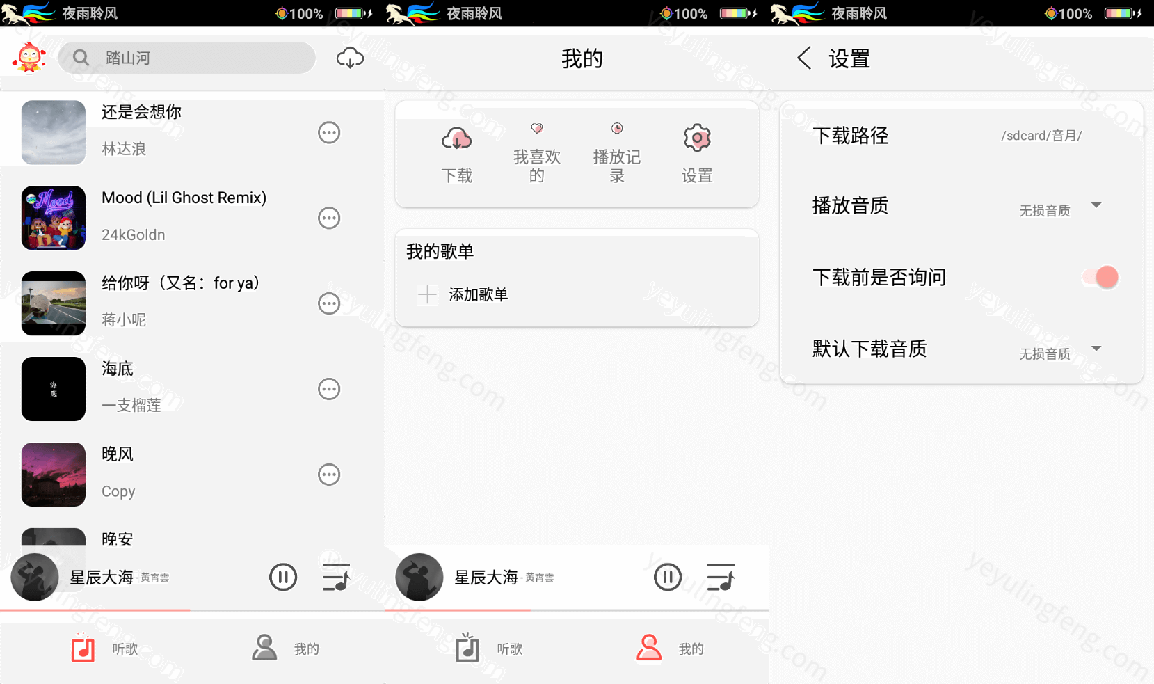 下载后的音乐文件默认在“音月”中文目录下,通过设置可以选择默认的下载路径以及音质选择,曲库还是挺全的基本上都能搜到,还支持在线试听以及歌词显示。在线听歌只能说凑合,毕竟主打的还是下载功能
