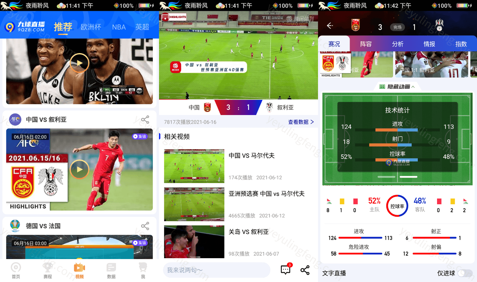 视频板块汇集了各种精彩集锦,有英超、NBA、西甲、意甲、CBA、中超等分类的精彩视频,同时软件还支持选择喜欢的三个联赛优先看数据,不过视频版块大部分都是视频集锦长度明显不够看,不过对于一些赛事的数据分析还是非常专业的,什么控球率、阵容、指数以及队员信息这些都是非常详细