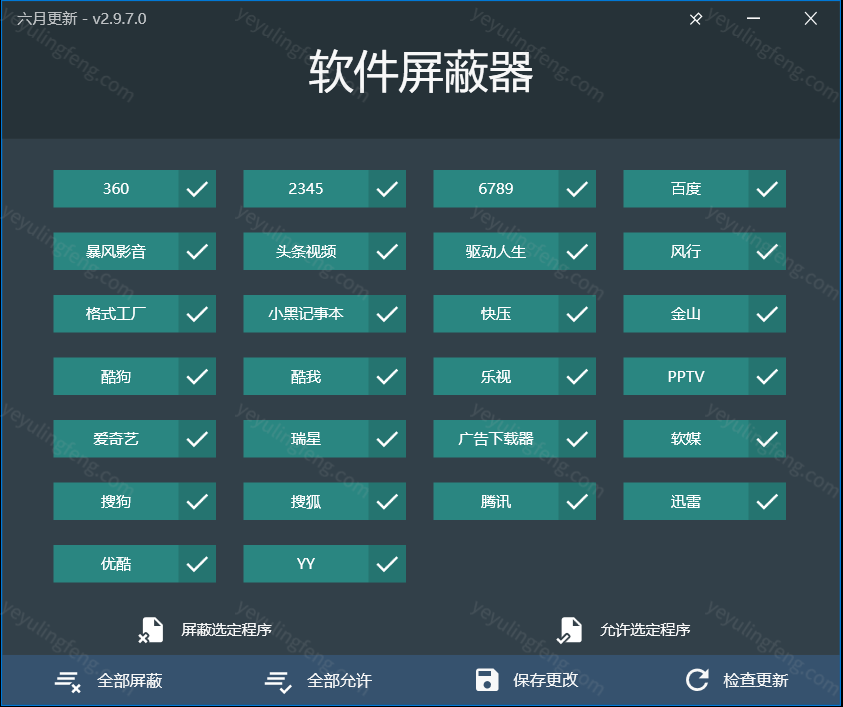 这里划个重点,打勾的是允许该流氓软件运行,打叉才是软件屏蔽状态,按照自己的需求设置完之后点击底部的保存更该就完成了!