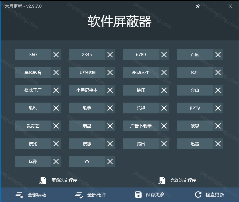 为了测试老夜还亲自作死去下载了几个流氓软件安装,这个软件屏蔽器的用法还是非常简单的,默认打开是下面介样子的