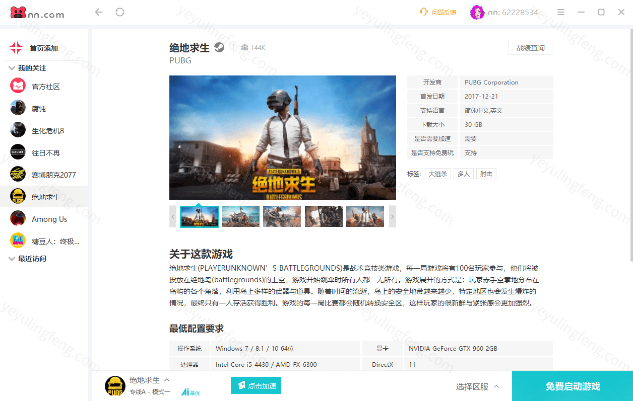 打开首页就能看到各种显眼的“免费加速”大字体,有已经凉了但还没完全凉的吃鸡,买不起也玩不起的赛博朋克等游戏均在免费加速的菜单中