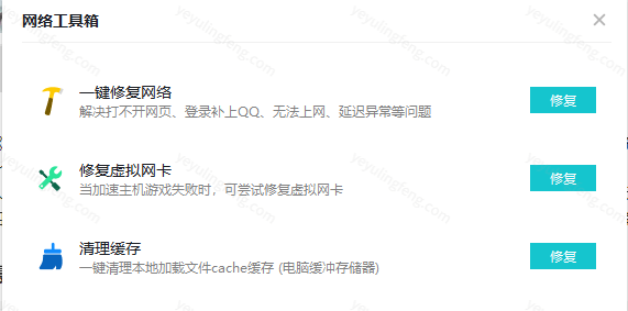 加速出现问题可以使用自带的工具箱,工具箱的入口就在上图中的选择加速线路顶部点击就能进入了