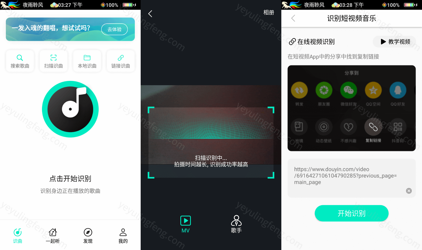 看着名字就知道是听歌识曲的工具了,现在只要是个音乐App都支持听歌识曲了装这个做甚?Q音探歌跟传统意义上的工具不一样,除了基本的功能新增了扫描识曲以及链接识曲,扫描MV、歌手就能识别出音乐了。