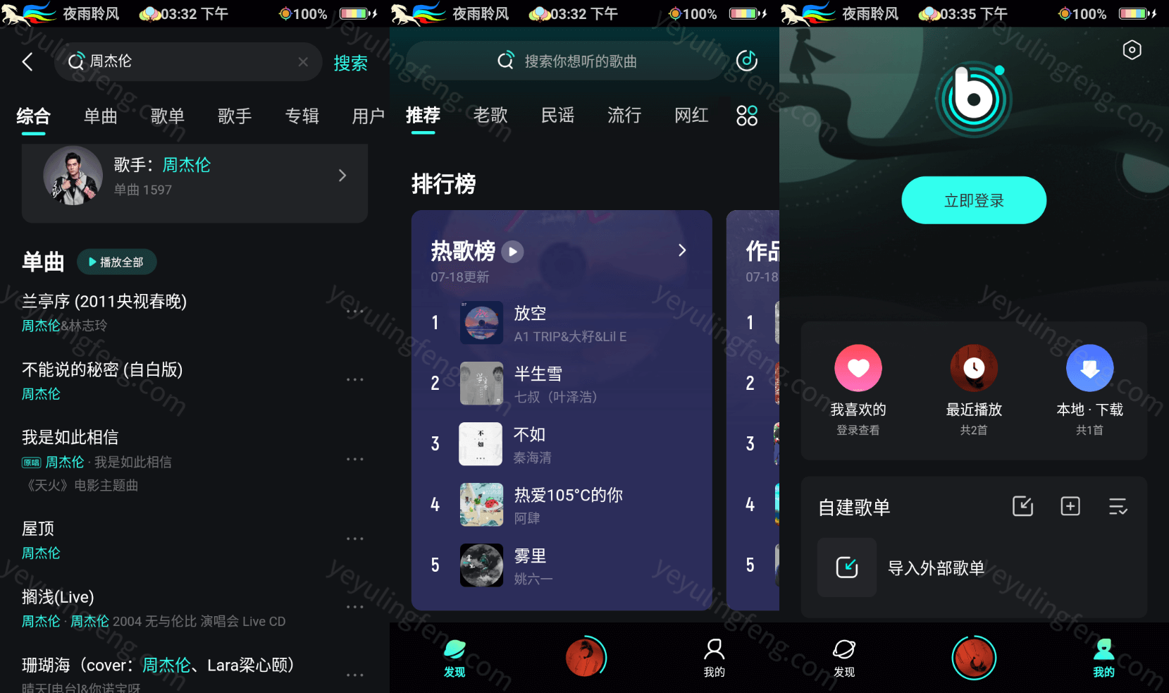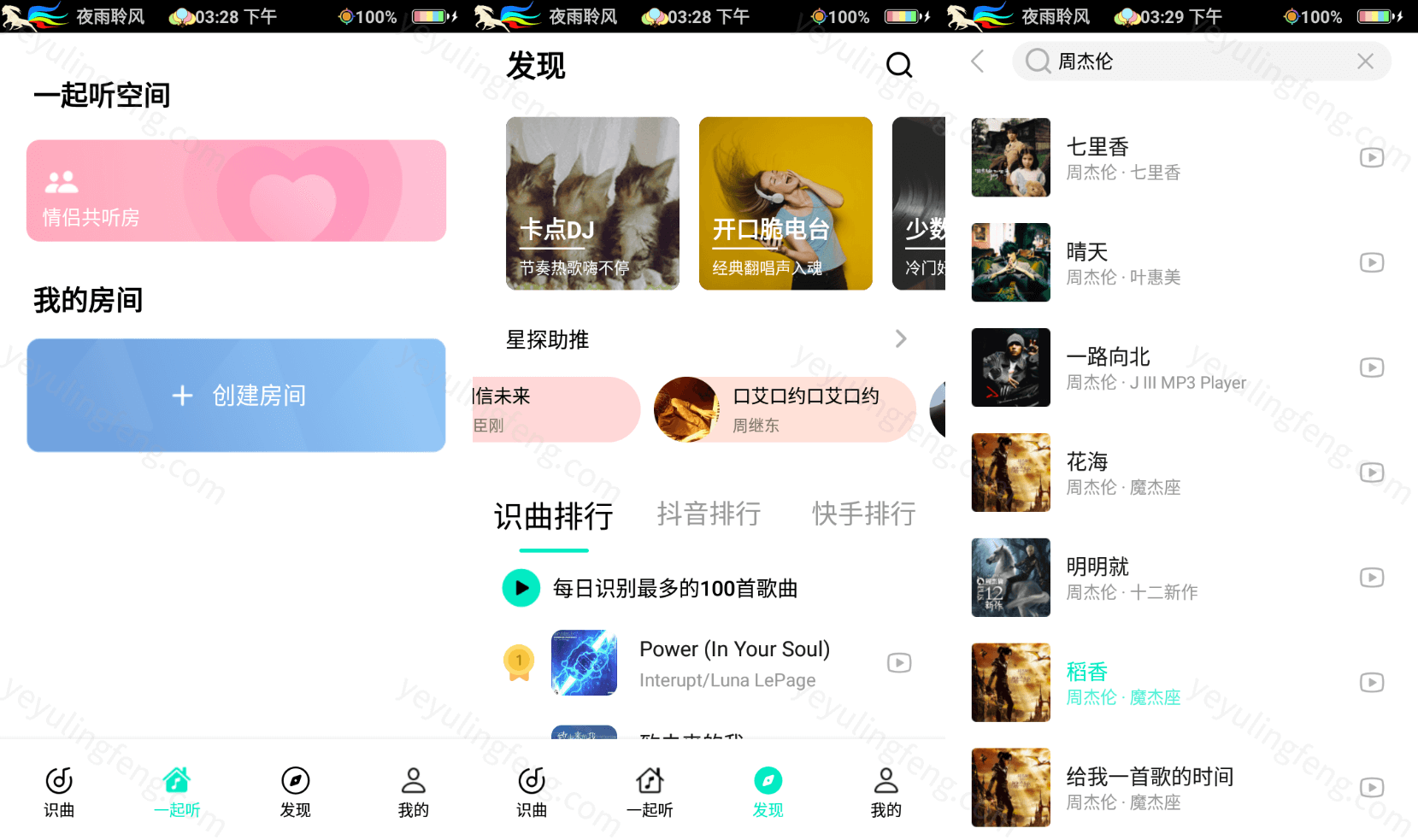你以为只能识别歌曲就没了,大错特错,看看老夜发现了啥!不光可以自己听还可以半夜拉上朋友一起听,自带歌曲播放以及搜索功能,周杰伦的歌曲也能免费听,这就很给力了,音乐播放功能肯定是弱化了要不然就砸了大哥QQ音乐的碗了