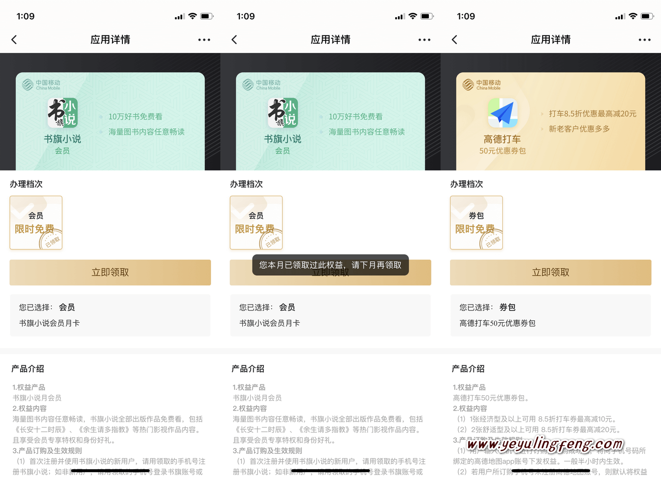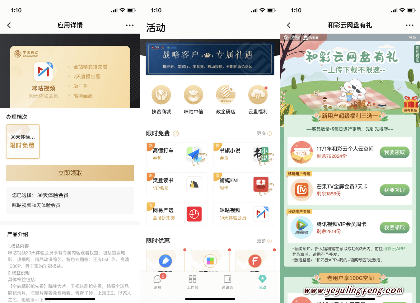 登录成功后在右下角找到活动页。 免费领取咪咕视频、书旗小说、高德打车、樊登读书、蜻蜓FM等会员