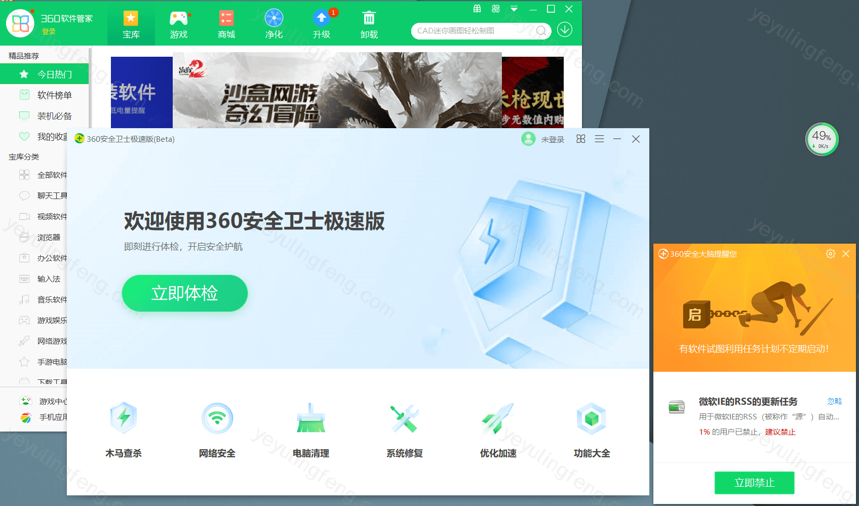提起360首先想到的就是360安全卫士了,网龄稍微大点的或许还知道3Q大战这一著名的互联网战役,当年杀毒软件还是付费的年代360打着免费的旗号占据着不少的市场份额,鱼和熊掌不可兼得,免费的代价就是在使用产品时会夹杂着各种广告推送、新闻弹窗、渣渣辉一刀999这些。大部分小白用户基本上都安装过360安全卫士老夜也不例外,悬浮球、杀毒以及各种实用的修复小工具确实让不少用户比较依赖。随着电脑折腾多了一些设置能自己配置就会发现360算是后台进程占用的大户了,再加上各种弹窗以及Windows 10的安全优化,越来越多的用户开始转头火绒安全或者Wise Care 365这些更专业更轻爽的工具,当然了Windows 10中的Windows Defender已经不再拉跨完全可以保护电脑了电脑不安装官家也不是不可以。