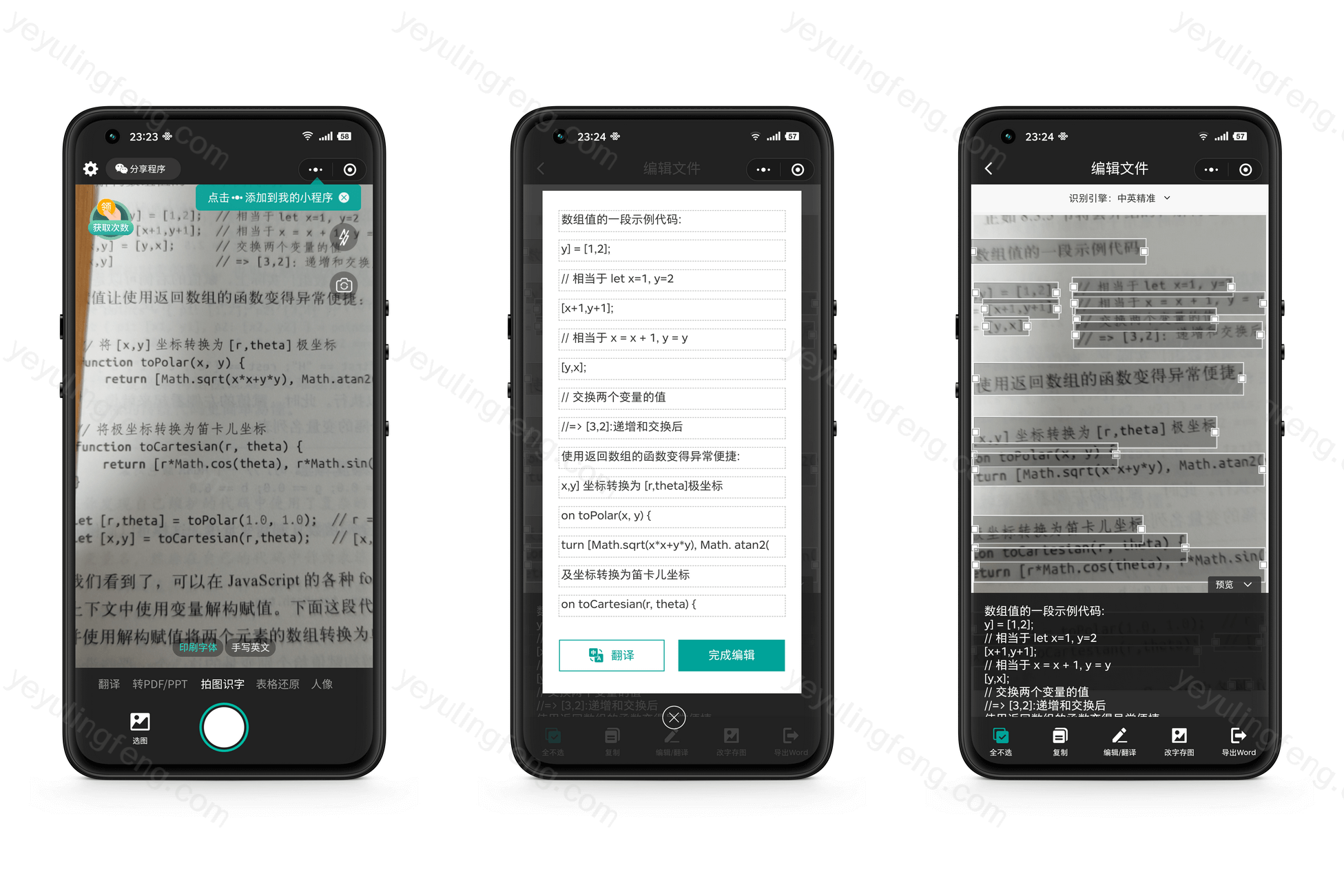 上述功能在完成使用后可以立刻进行编辑、并提供了微信分享、文件保存等功能。可以帮助大家在微信里一站式完成需要的工作。毫无疑问,这款小程序将能带来一大波生产力!对于平时使用频率不高就偶尔扣个字提取公式表格这种情况,微软AI识图这个小程序自然是不在话下的,还不用下载安装打开微信就能直接使用了。