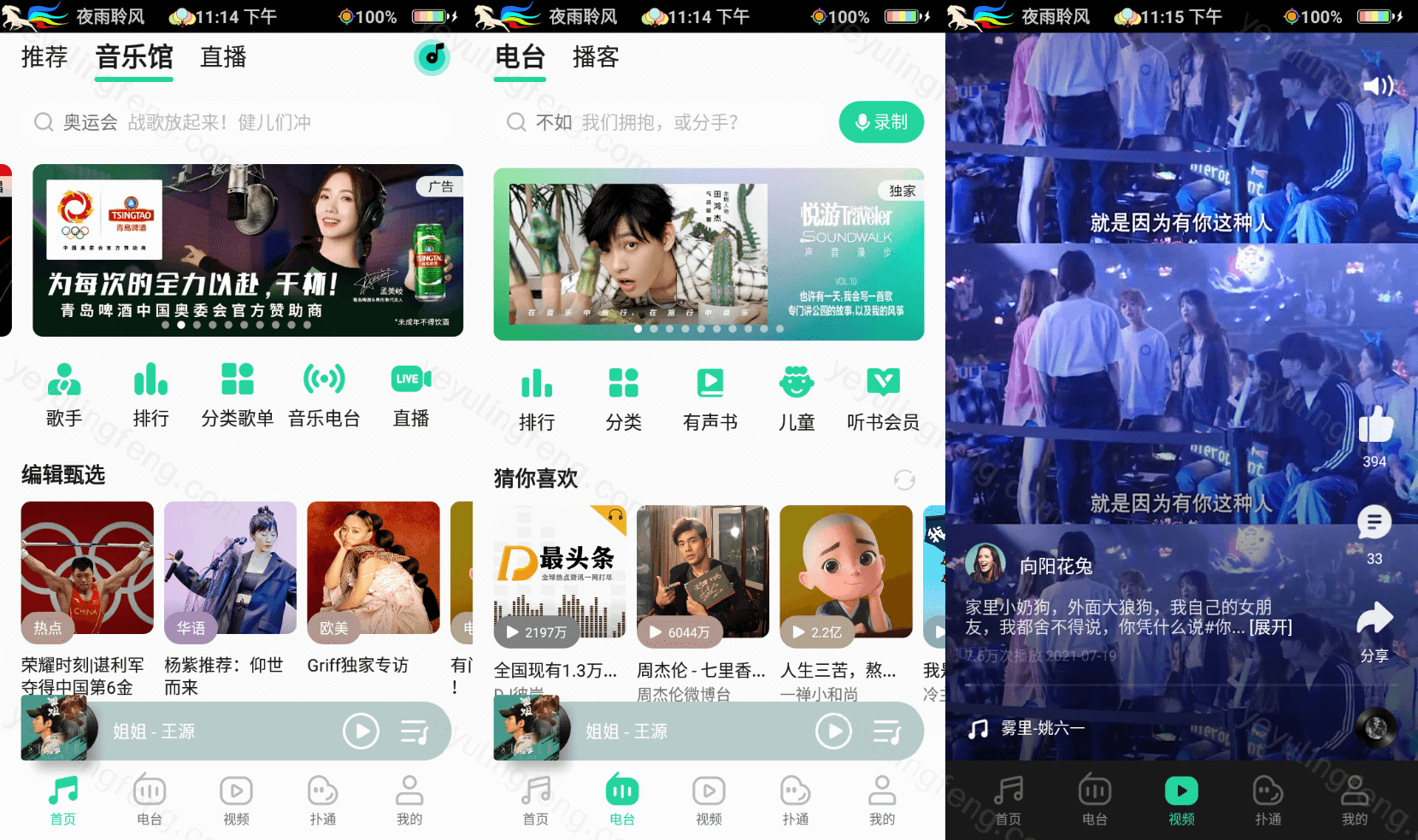 短视频、K歌、直播、电台、活动广告、消息推送一个不落,一个音乐软件不仅可以听歌还可以看直播、看新闻、刷视频,灰常的强大,毕竟能塞这么多的东西开发团队也不容易,理解万岁就完事了