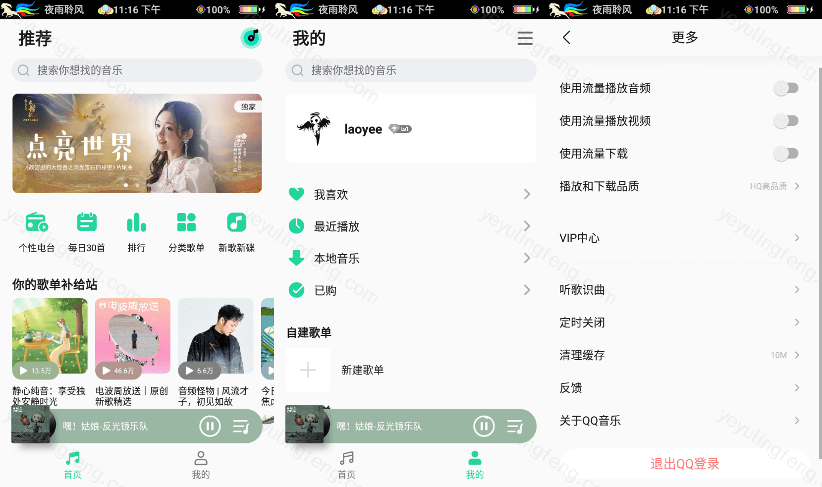 曲库方面当然是没话讲,周杰伦、五月天都是一搜就有,一听就要钱,可以利用老夜之前分享的好多免费下载无损音乐的工具通过本地导入的方式听歌,至于歌单、排行榜这些都是*啊,这里就懒得介绍了
