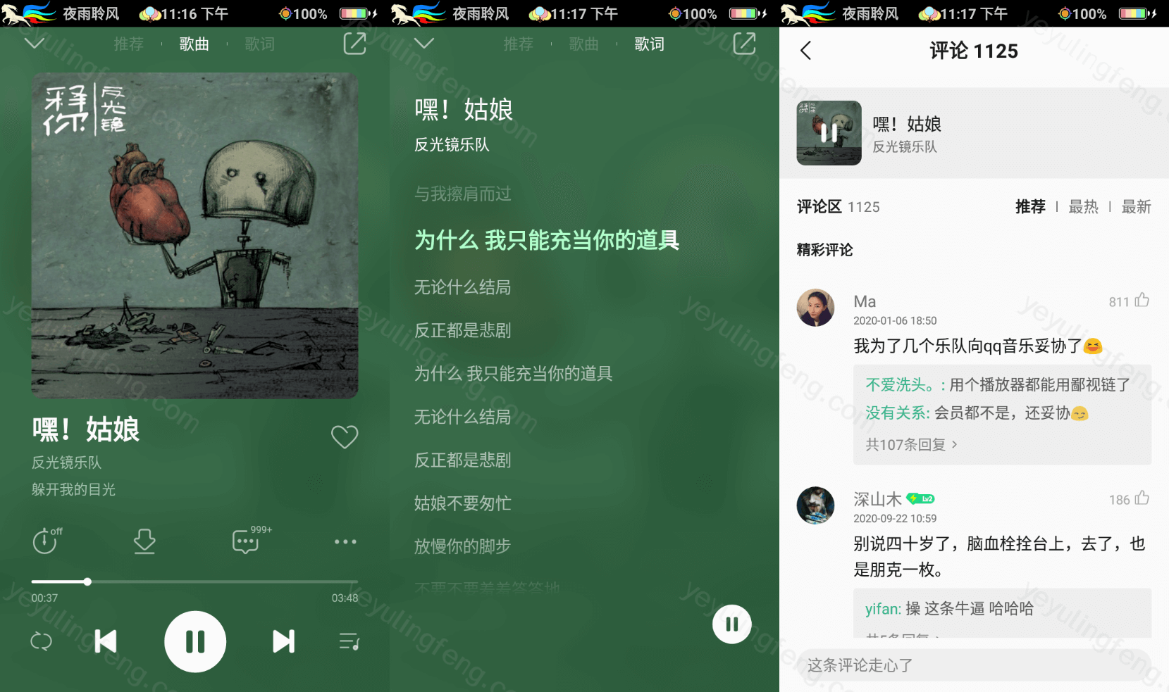 听歌体验也是比较舒适能在歌曲/歌词之前快速切换,评论区依旧还是小学生的天下