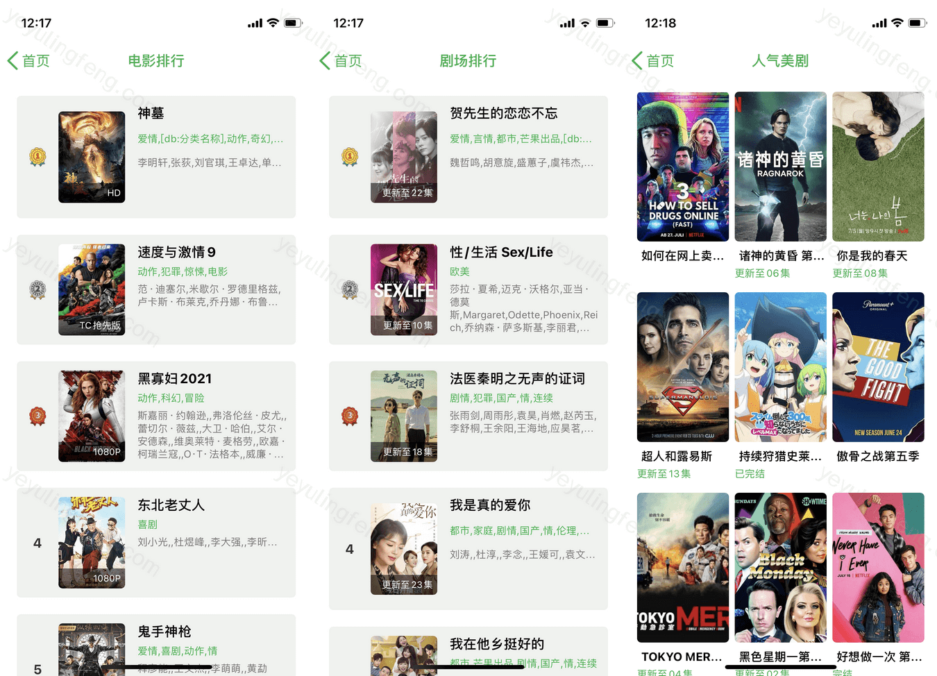 分类榜单算是该软件的另一大特色了,各种排行能发掘不少佳片,同时还能看美剧、日韩剧、纪录片等