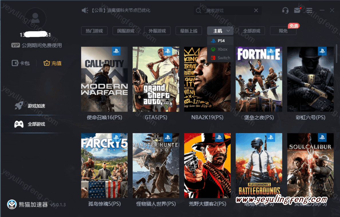这个加速器貌似有一段历史了,记得以前就有收费模式,也不知道是不是同一款,不过这里还是要强调一下内测期间免费的字眼,显然是不准备长期供白嫖玩家使用的,前期引流为主后期变现,除了网游以外还支持主机游戏