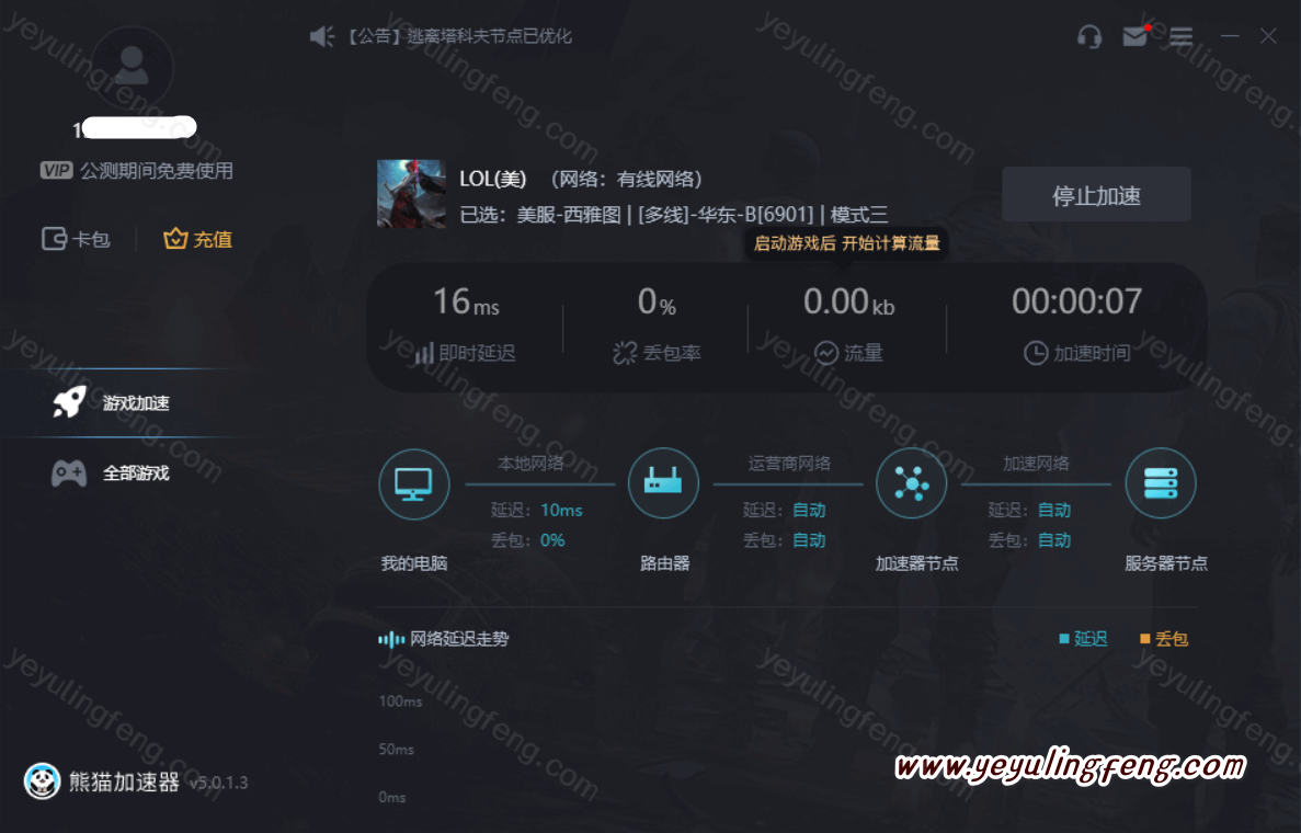 老夜已经好长时间没碰过游戏了,这里就无法给大家进行游戏体验,关于延迟等需要自己下载使用实测为准,后续如果出现跑路了或者收费了及时文章中反馈,老夜会继续搜集一些免费可用的加速器资源!