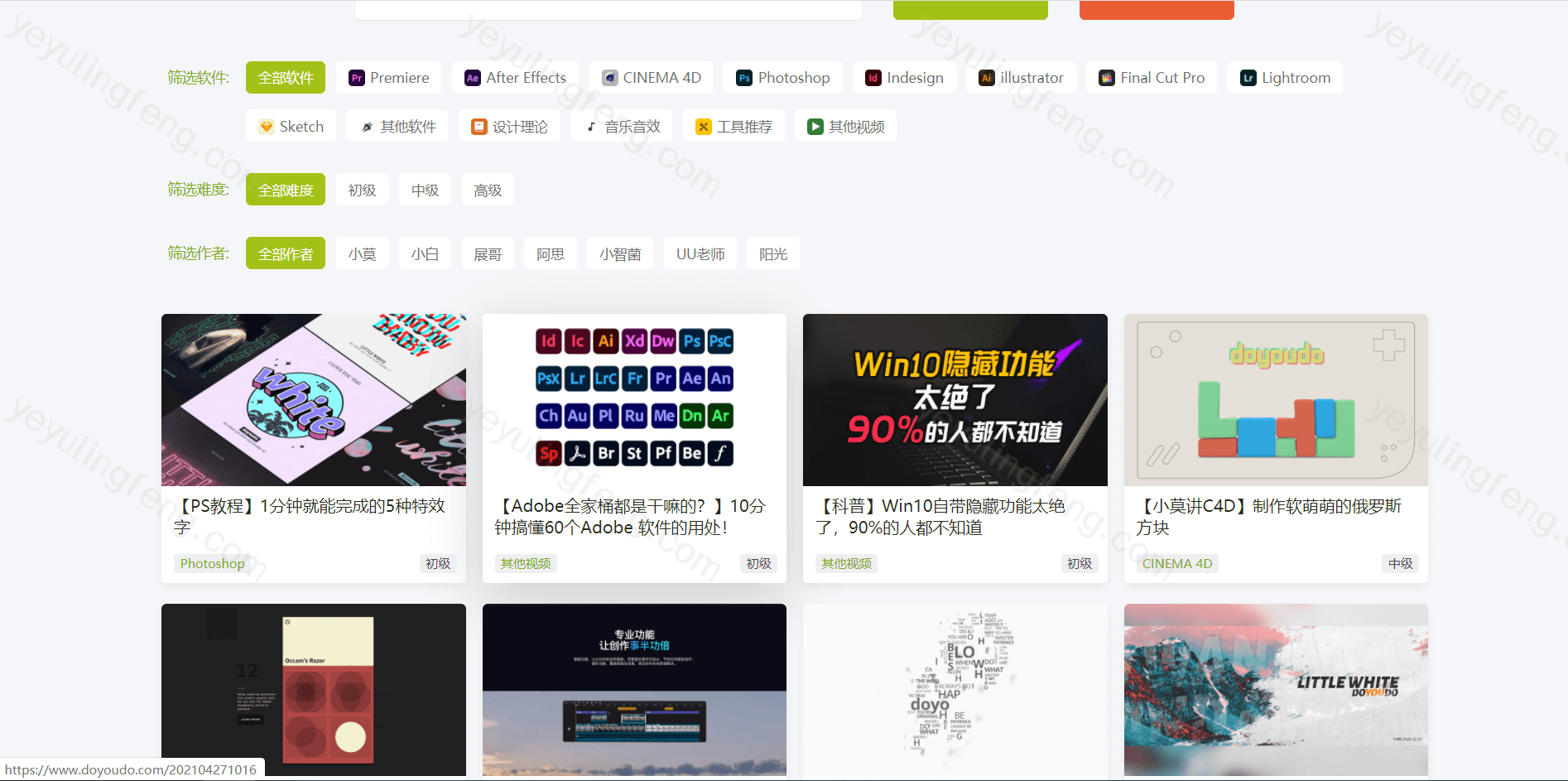 前面介绍的两个课程都比较杂基本上要啥有啥,而doyoudo就比较偏科了,doyoudo是国内设计师学习网站,包含了PS教程、AI教程、UI设计、网页设计、排版教程等,专注平面设计、视频剪辑、动画包装、音乐音效等艺术设计领域的技能提升