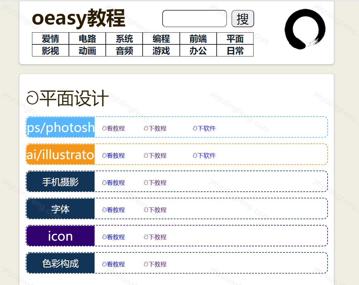 oeasy系列网络教程,以“oeasy就是给想学而没钱学的人做的”理念,以最轻松直白又妙趣横生的讲课风格与大家分享经验,让网络帮助我们获得更多的便利和表达方式。主要作品在电驴和各大视频网都有更新;成为09年炙手可热的网络教程,并且受到大批粉丝的推崇,有以OEASY命名的贴吧、论坛、网站。