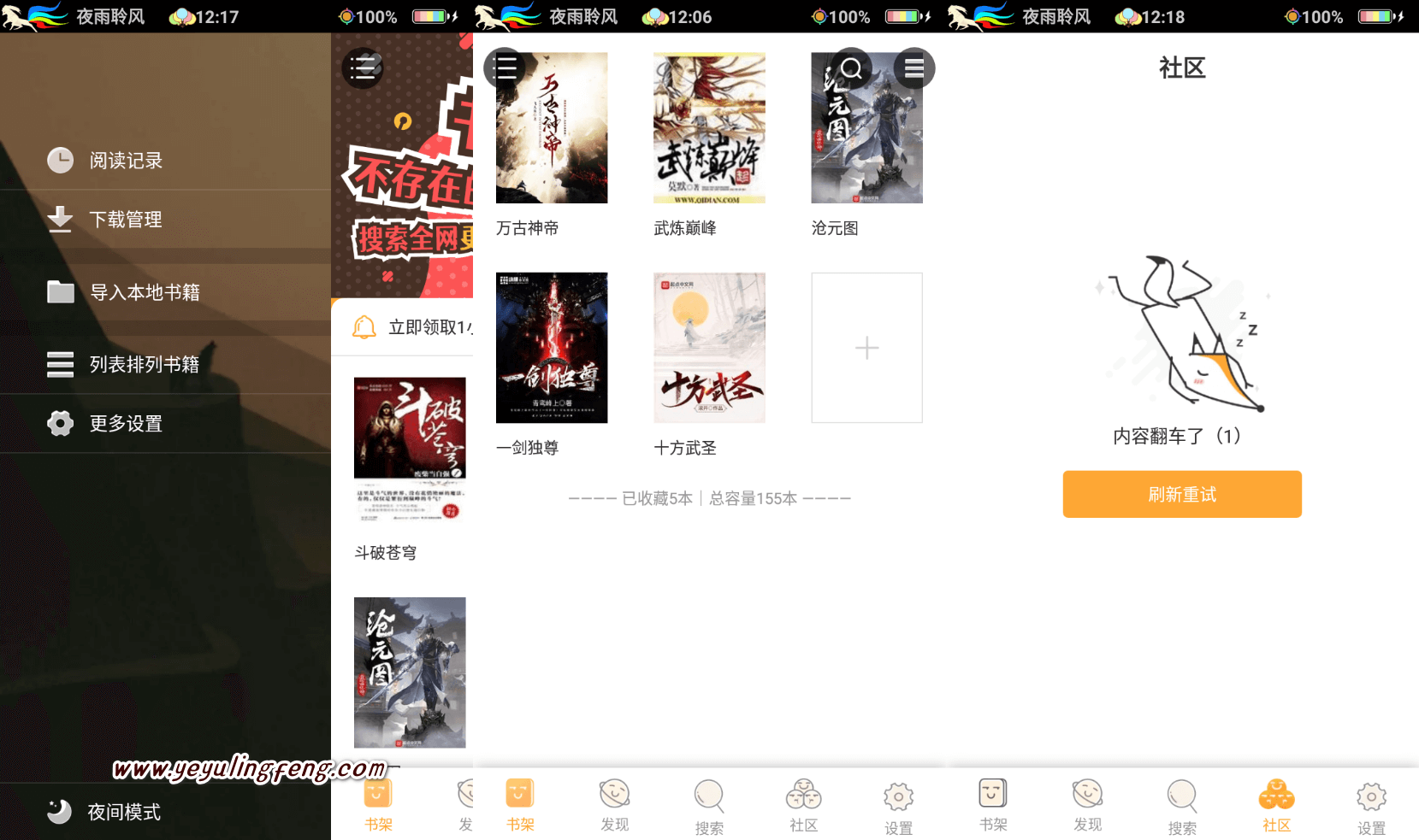 软件打开就是书架,可以用坏坏猫自带的搜索或者发现栏目中寻找需要的网络资源,也可以直接导入本地TXT文本使用坏坏猫app阅读,新版还加入了社区功能,不过目前还是处于1.0版本,部分功能似乎开发到一半就匆匆上架了,还有好多功能需要完善,软件无任何付费增值服务可放心使用