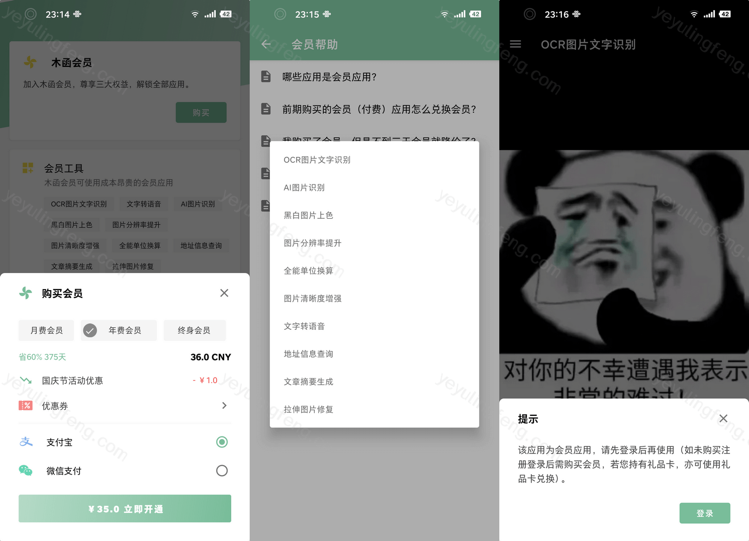 然而几年过去软件也开始商业化运营了,最近老夜才发现居然推出了付费服务,毕竟含有一些OCR文字识别、文字转语音这类功能,均是买的付费接口收费理所应当。老夜最近也在开发工具类的微信小程序,因为用的人不多体量小一些付费接口自费给大家用也不痛不痒,对于使用频率不高的会员特权功能单次就要付费,大部分白嫖用户应该是不能接受的。将近100个实用工具的结合剔除几个付费功能依旧是很能打,但是一些会员、支付的内容展示始终是不得劲,如果能给他去掉就更好了。