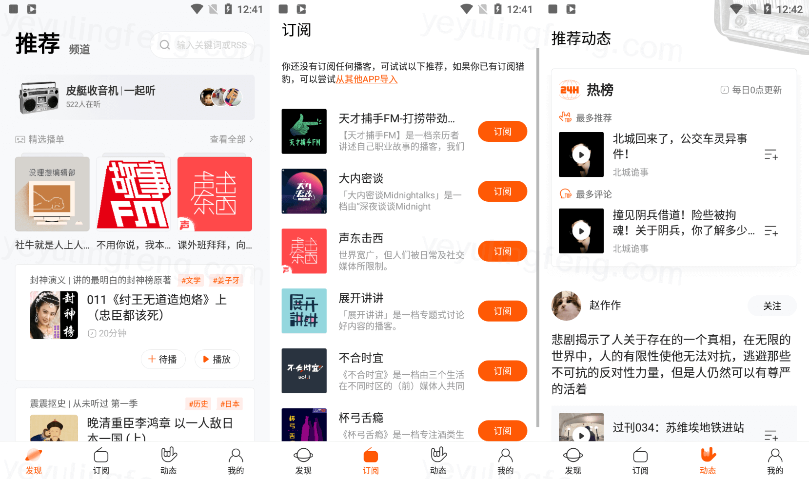因为是一款新软件与其他家相比,没有乱七八糟的广告以及动不动就要开会员的模式,当然了如果喜欢有声小说的小伙伴还是乖乖转隔壁喜马拉雅吧,皮艇App更适合一个人安静时听听外界的声音、像科普、时事、天文地理、资讯新闻等短音频,就跟利用碎片化的时间刷短视频一样,当然也不会像短视频那样容易上瘾,片刻的消遣恰到好处。