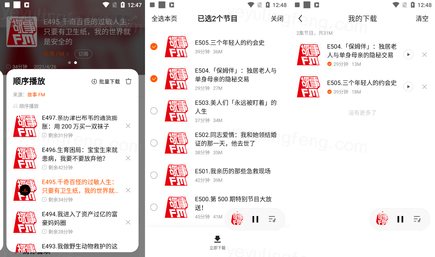 播放时支持前进倒退秒数、倍速播放、定时关闭、待播列表、订阅更新提示等功能