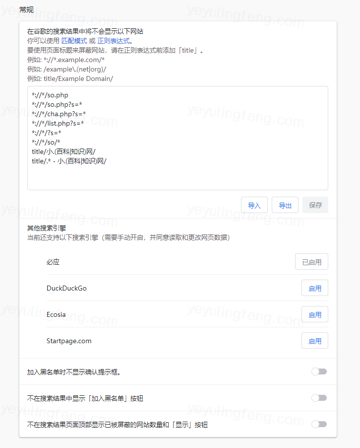 如果在看的有程序猿一定不会不知道正则表达式,通过灵活的规则就可以过滤一些我们不想看到的搜索展现内容,老夜搜集的规则大家可以参考下