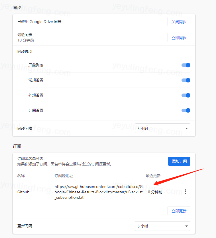 当然了光凭这样并不能一劳永逸,只要那些站点稍微变动个文章标题或者更换域名,相应的正则就没用了。但是民间的大佬们纷纷抱团共同维护中文互联网环境,真真切切用爱发电,不断的更新收集这些垃圾采集站的订阅源,且更新频率非常高基本上几天一更新,只要将订阅源添加到uBlacklist相应的位置就能享受更好的优质体验了