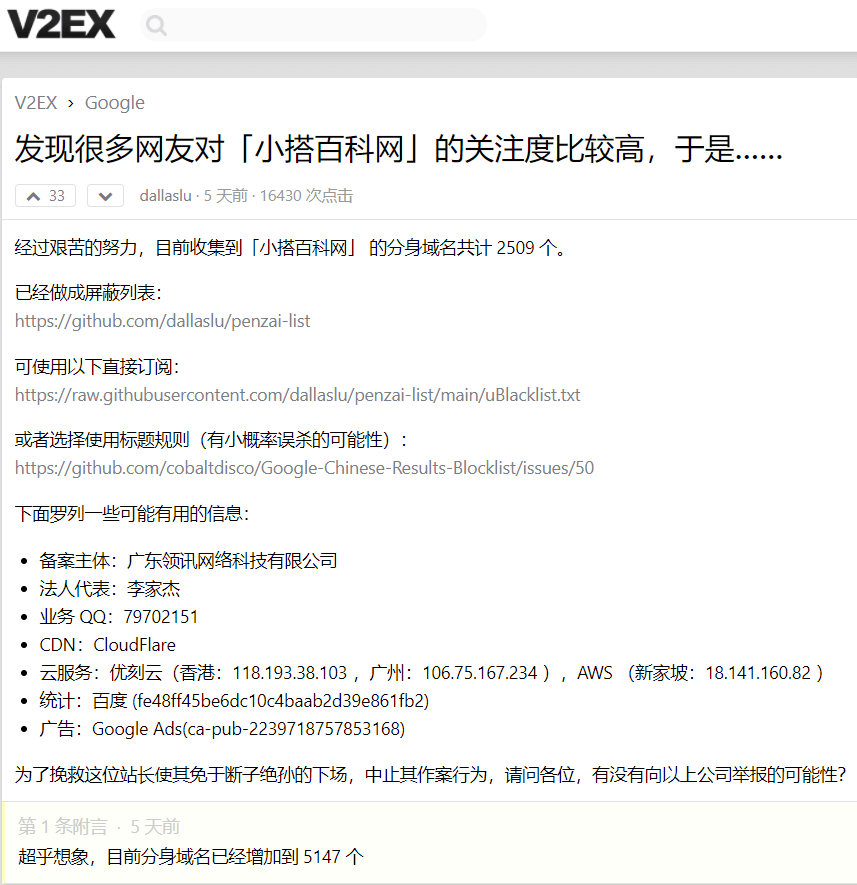 毕竟用户群体技术大佬还是比较多,一时间纷纷炸开了锅,于是没过多久就将某人的信息扒的一点都不剩,就差贴照片发家庭住址,虽然这种方式有些不妥但是对于破坏互联网中文搜索环境属实极其恶劣,只能说干的漂亮!