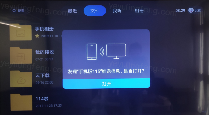 115可以多端数据同步,只要多端设备使用同一个局域网(WLAN),在手机端或电脑端就可以直接把文件推送到大屏版,大大节省传统投屏的繁琐步骤。
