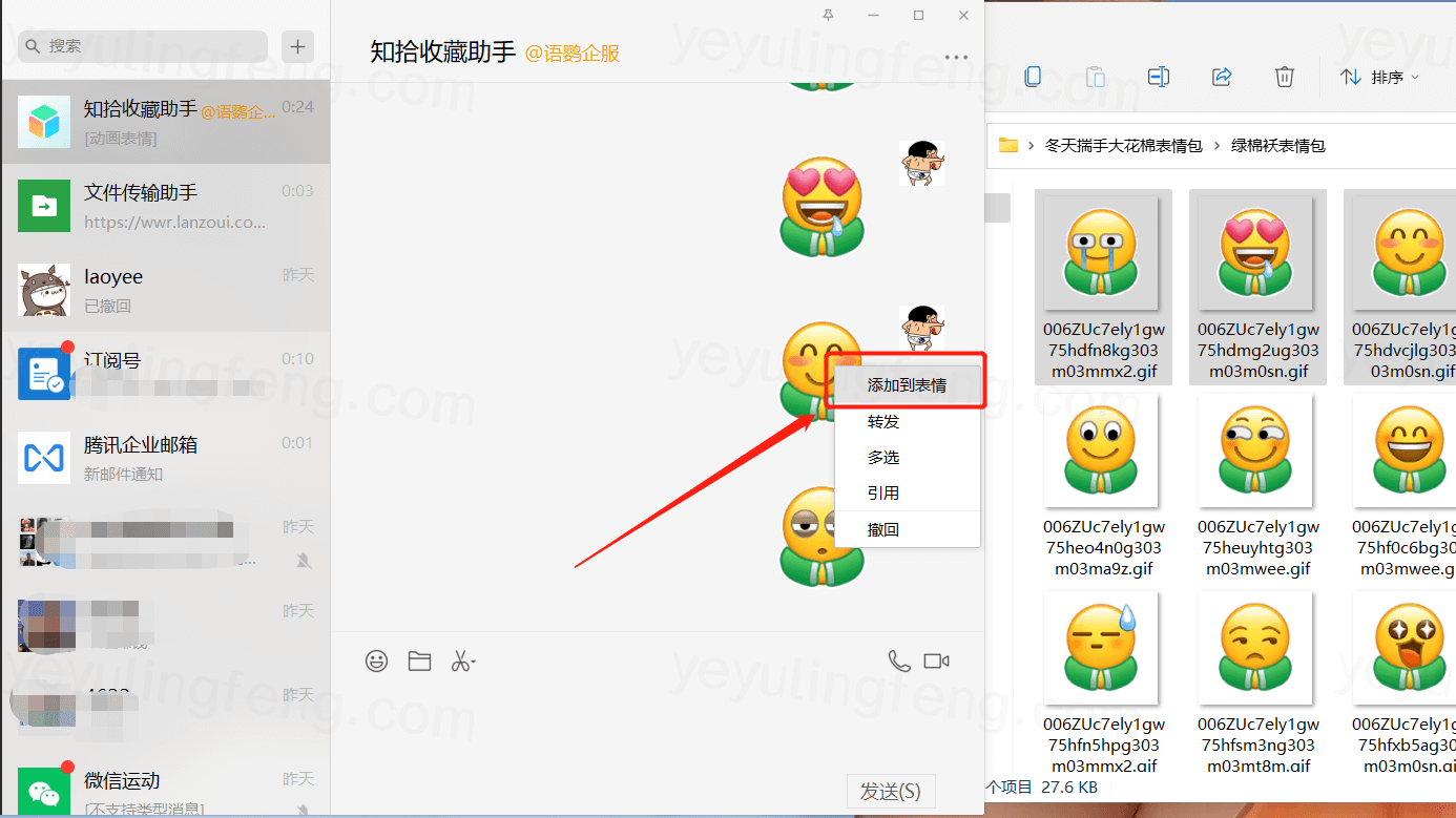 如果想批量添加至微信表情收藏中可以通过电脑直接拉到文件传输助手或者某个倒霉的朋友聊天界面一键发送,然后鼠标右键挨个收藏就可以了