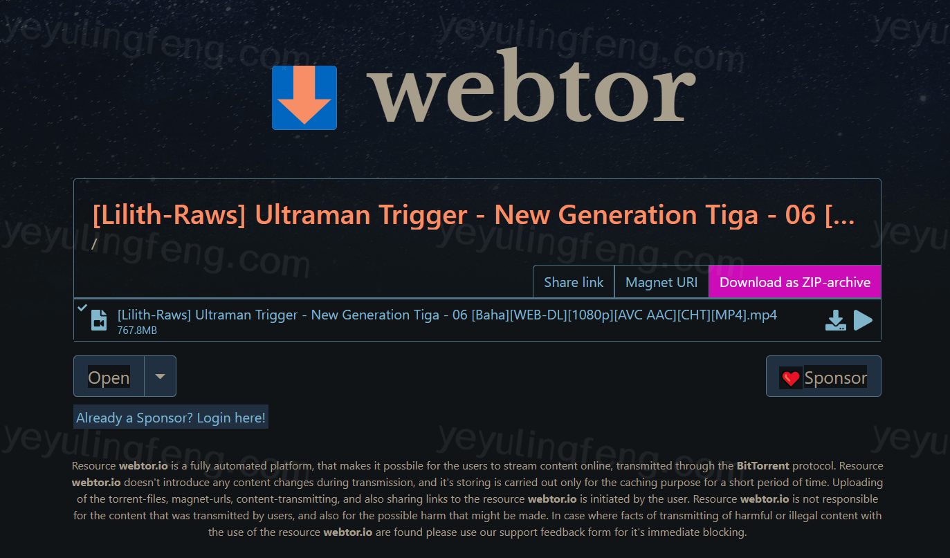 Webtor.io是一个稳定运行多年的老牌站点了,省去了我们在网上寻找片源时还得另找一款合适的磁力下载工具,而在线磁力解析网站本来就少,用一个黄一个,Webtor.io算是大大的填补了这个空白。