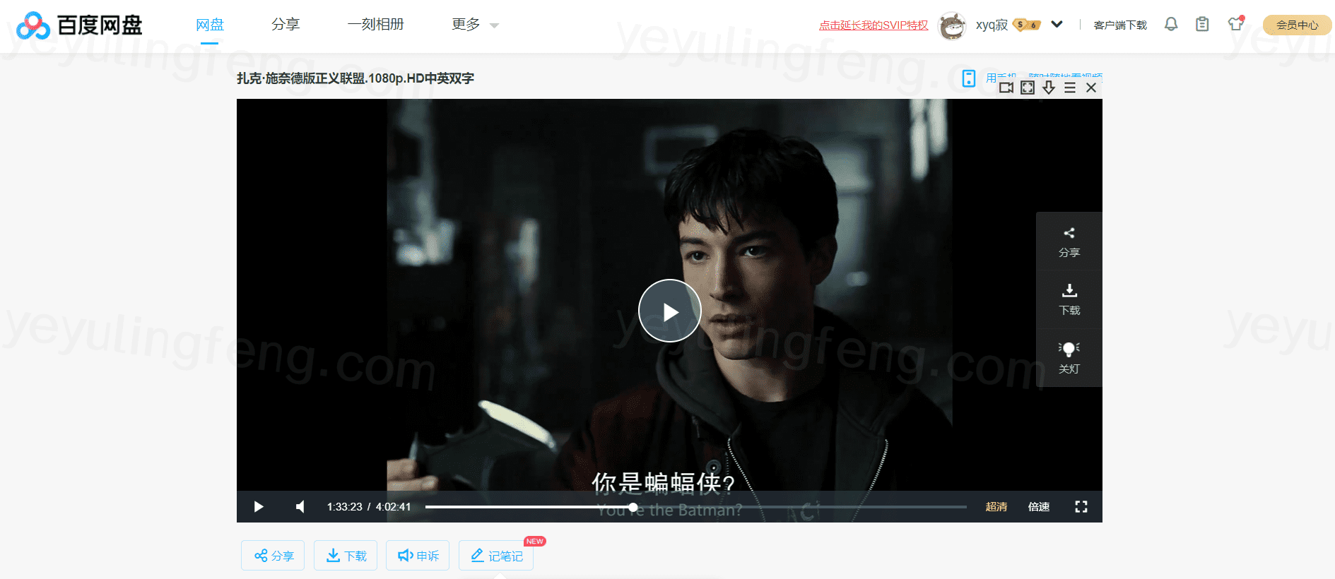 然后电脑打开百度网盘网页版,因为老夜某天想不开买了年费会员,这里拿着同一个帐号下的同一个资源进行在线播放对比