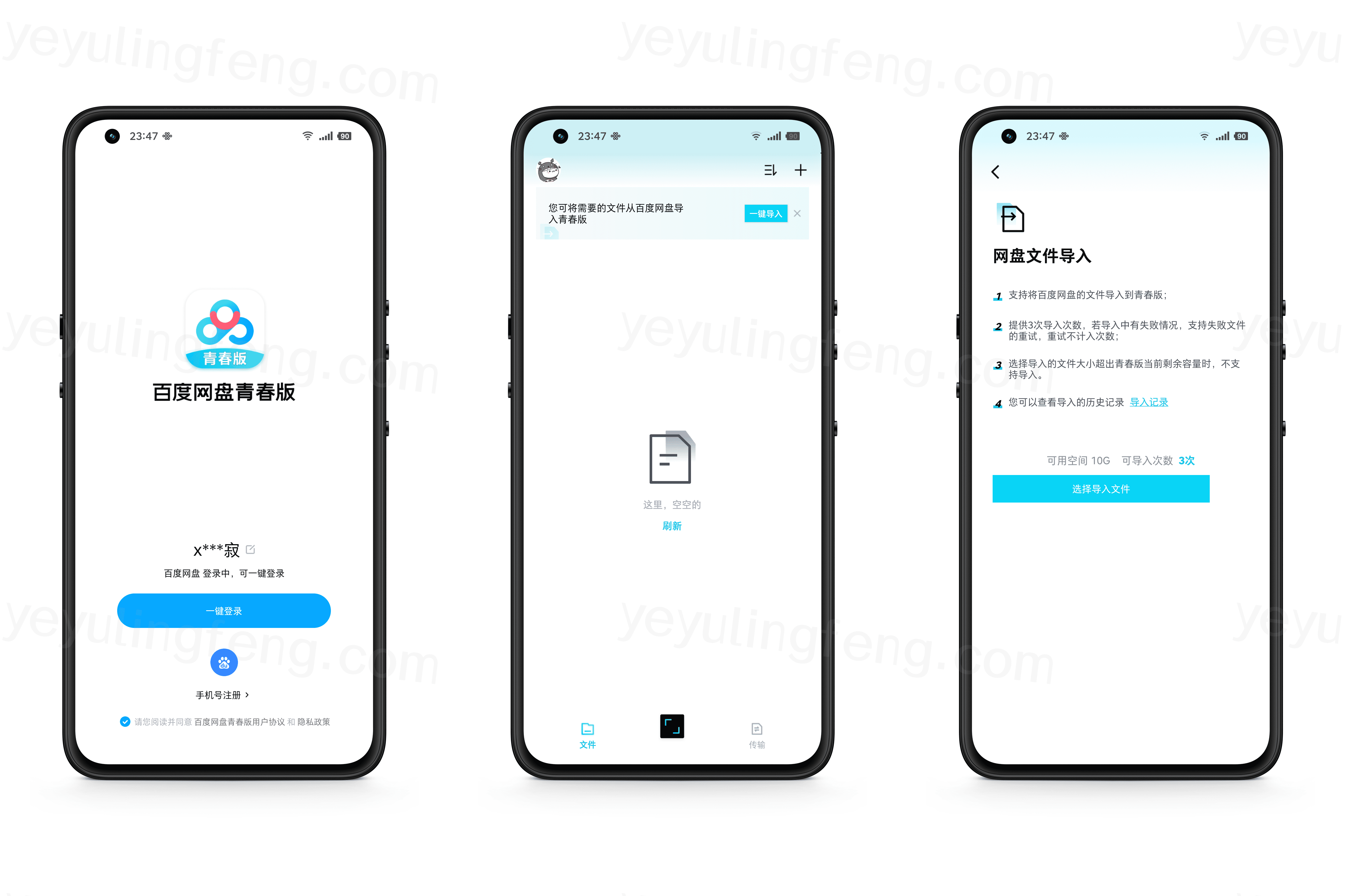 安装完毕打开应用,如果手机已经安装并使用过百度网盘的服务,这款青春版是可以一键登录的,非常方便,新软件尚在内测阶段,会员、广告、商城、借贷、钱包等一个都没有,不知道是不是没来得及做。