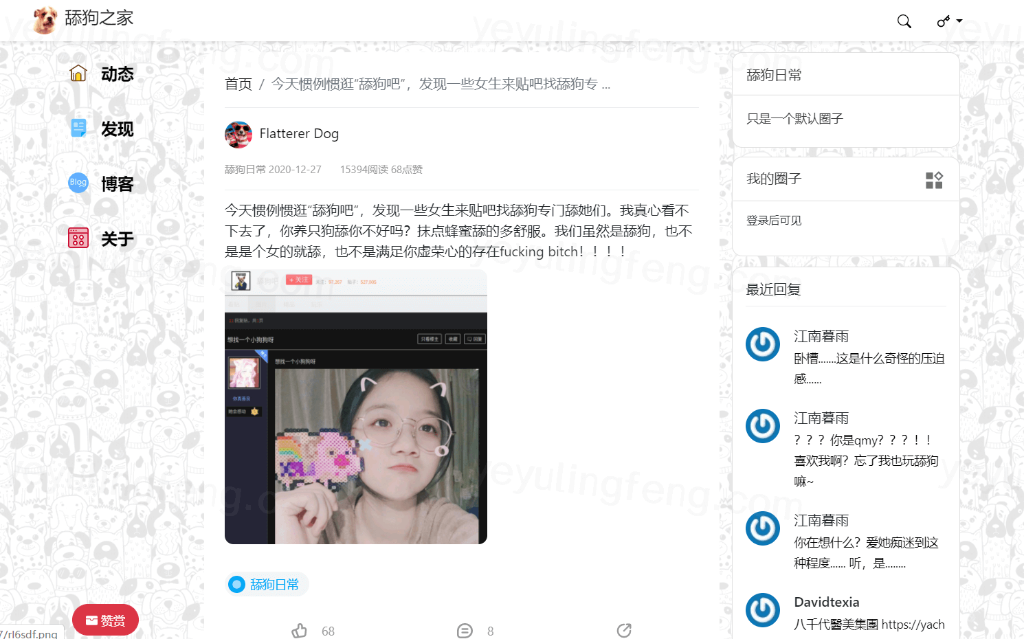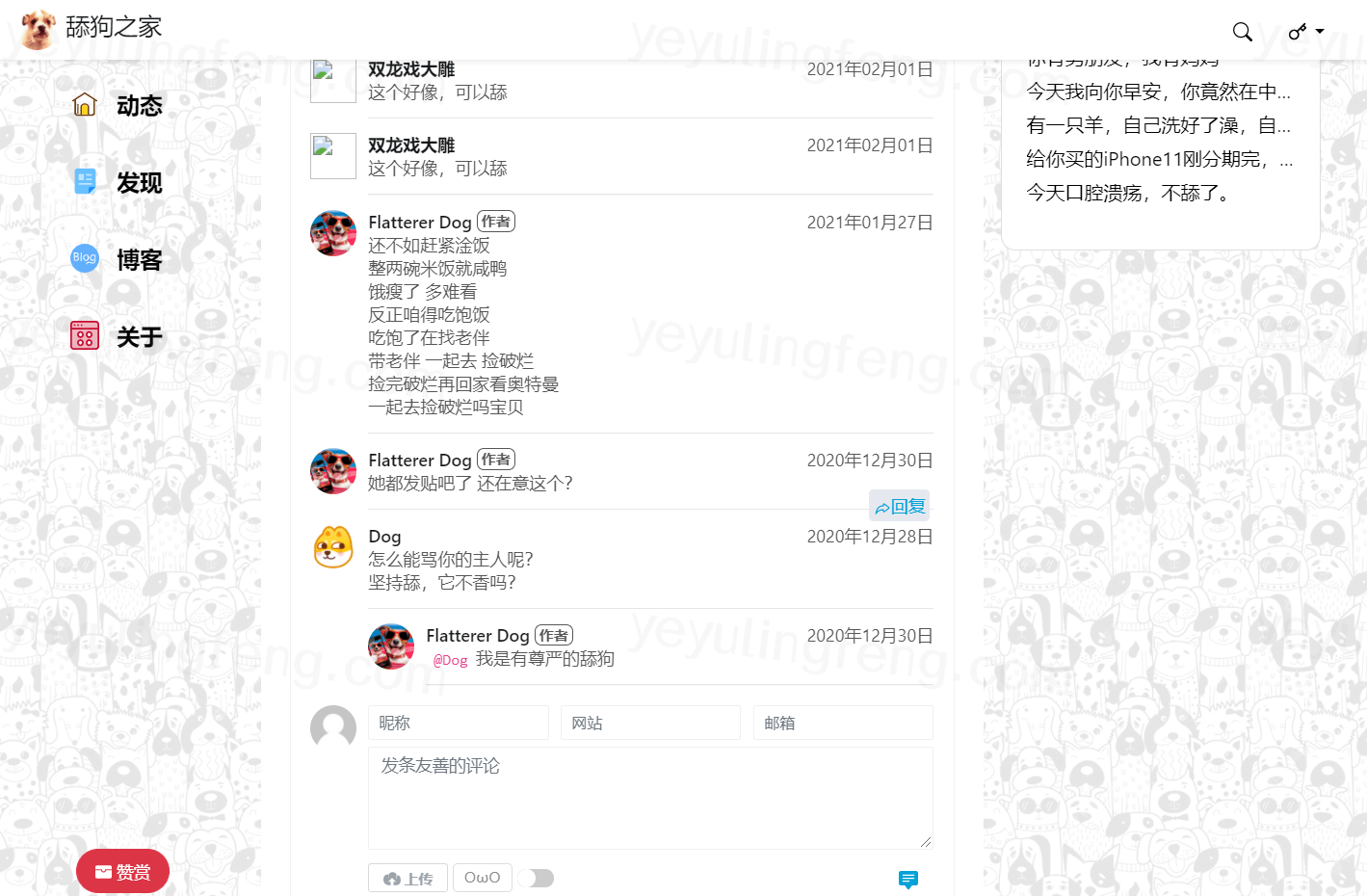 看着名字以及非常个性张扬的域名就知道这个网站肯定是有点那啥玩意的,各种舔狗的卑微语录