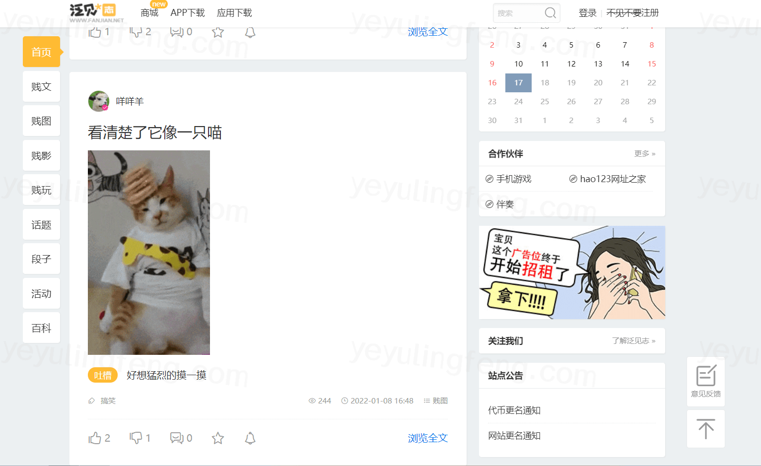 这算是为数不多还保留电脑网页端的搞笑娱乐网站,像糗事百科以及百思不得姐这些平台早早的就放弃了电脑网页了,Web端网页虽然辉煌不在但还是有不少人有着需求的。泛见志也算是老牌站点了至今还有着稳定的更新频率,春节估计都回家过年了上一条还是1月24号的内容,有着非常多的趣味Gif且每条都会自带神评论